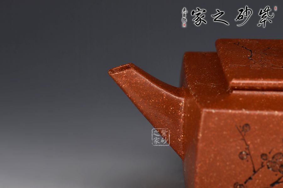特點:原礦因含緞泥、紅泥、紫泥等諸多共生礦,陶之后,于深沉之“橙紅色”底上,滿佈五彩斑斕的粗細(xì)、深淺之紅、黃星斑點。