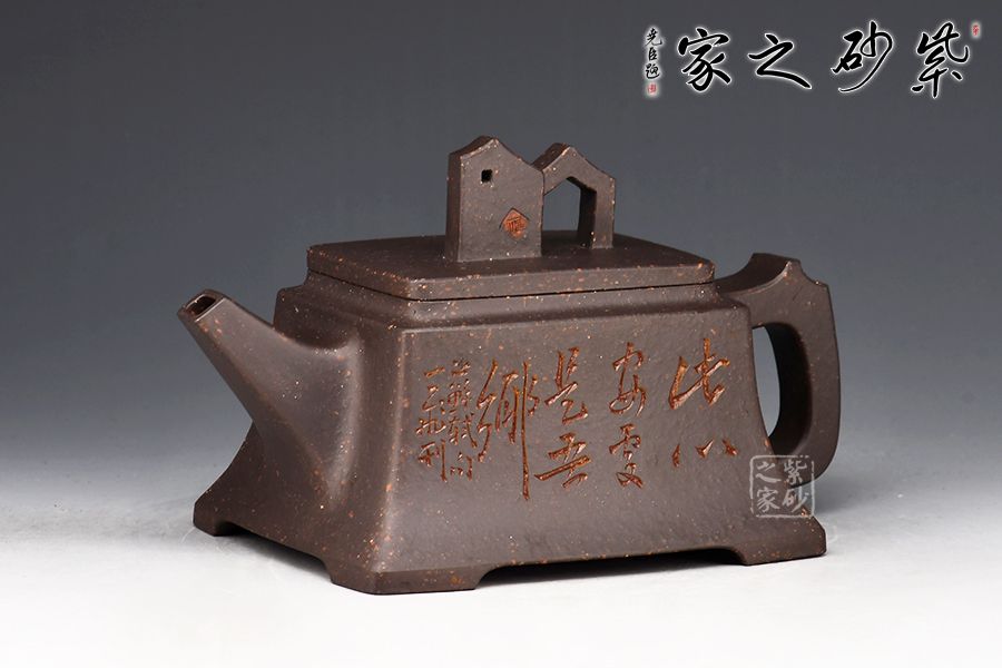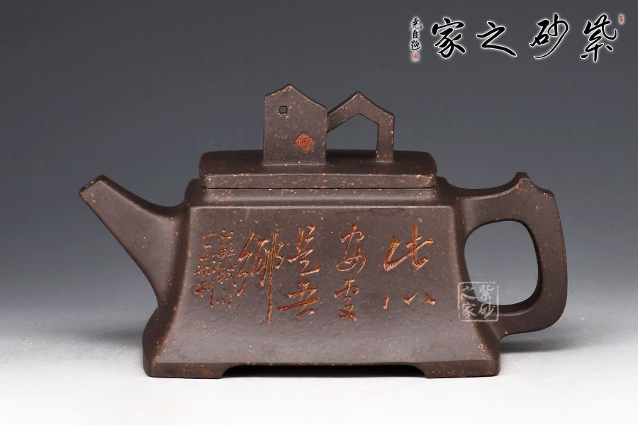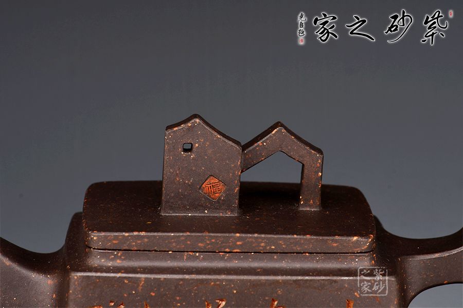 此壺名為此心安處,此心安處是吾鄉(xiāng),壺整體造型似一座房子,寓意為故鄉(xiāng),壺流修長,圈把簡潔大方,壺鈕似城墻,設計感十足,與壺流、壺把相得益彰。
