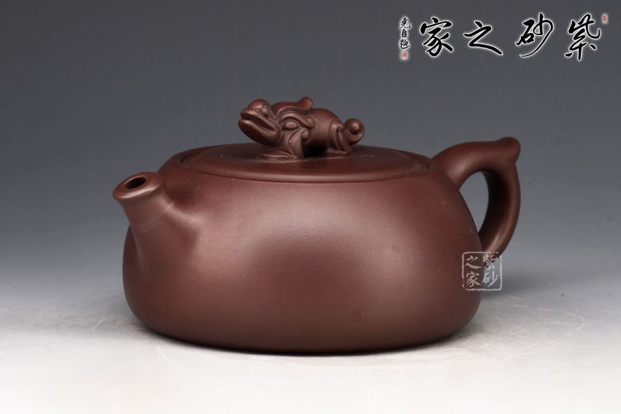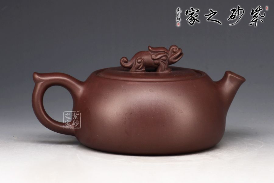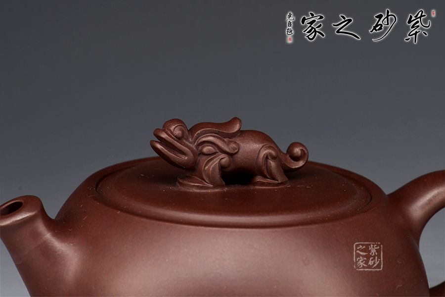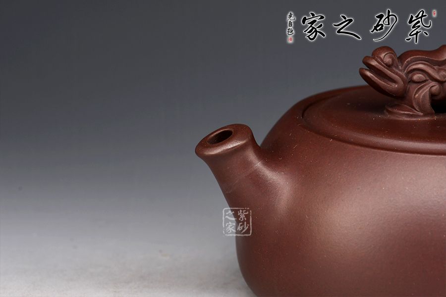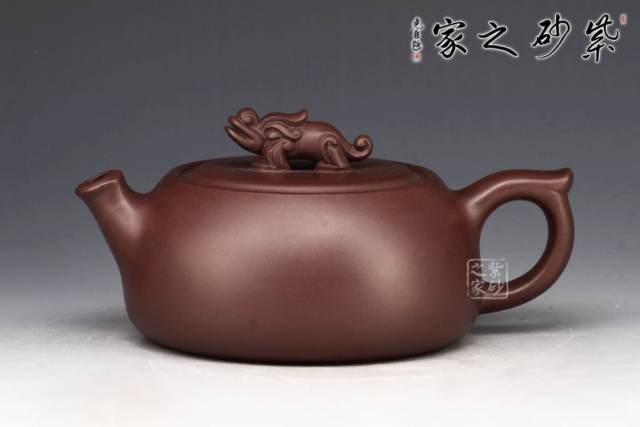 此款壺壺身略扁,大口蓋,投茶十分方便,瑞獸壺鈕拿捏舒適,直流嘴出水暴爽!家藏紫泥制作,好泥好工,加上280cc的黃金容量,自用送人皆宜!
