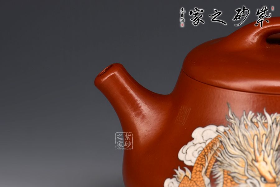 特點:質(zhì)感綿密、緊實細緻,持之扎實沉重、紅潤豔麗,泥中極品,無以倫比;泥胚含少許原礦顆粒,沖淋熱水后色變極大,呈紅中帶紫,養(yǎng)壺易現(xiàn)“包漿”之美。