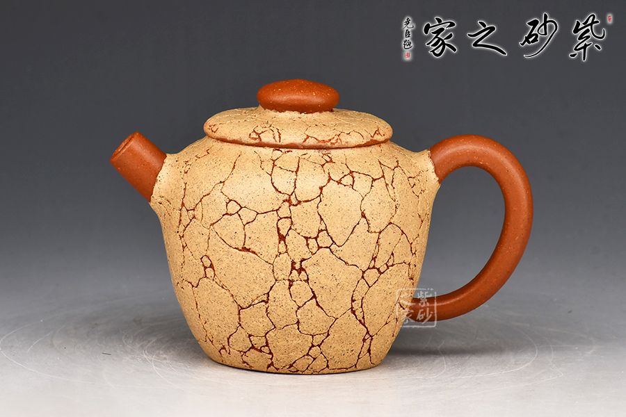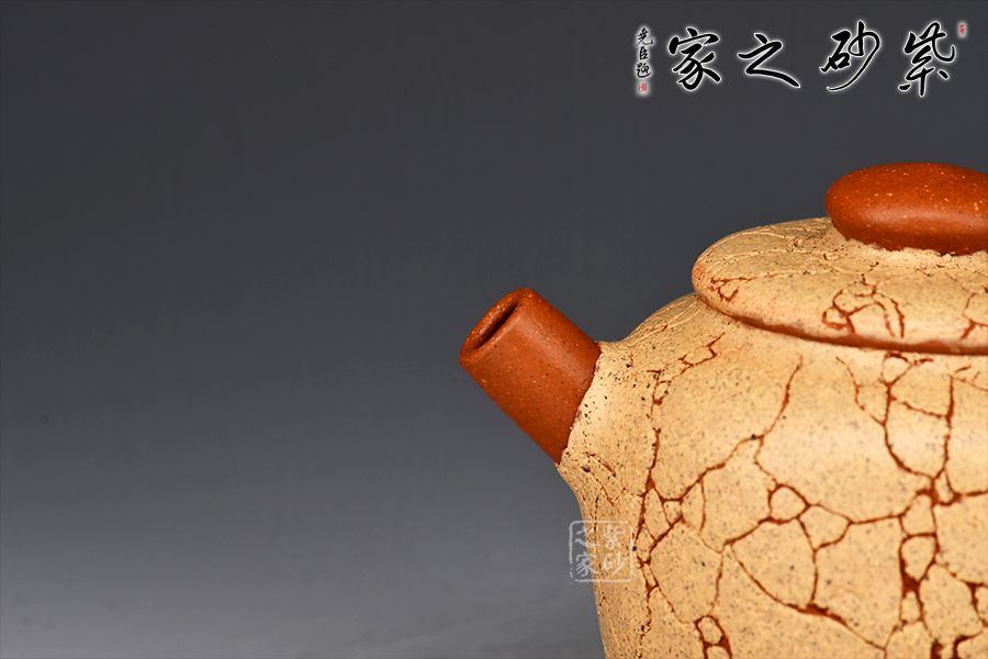 泥性:原礦因含緞泥、紅泥、紫泥等諸多共生礦,陶之后,于深沉之“橙紅色”底上,滿佈五彩斑斕的粗細(xì)、深淺之紅、黃星斑點(diǎn)。