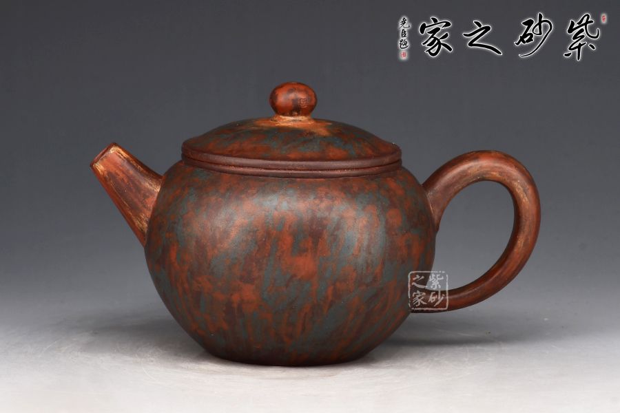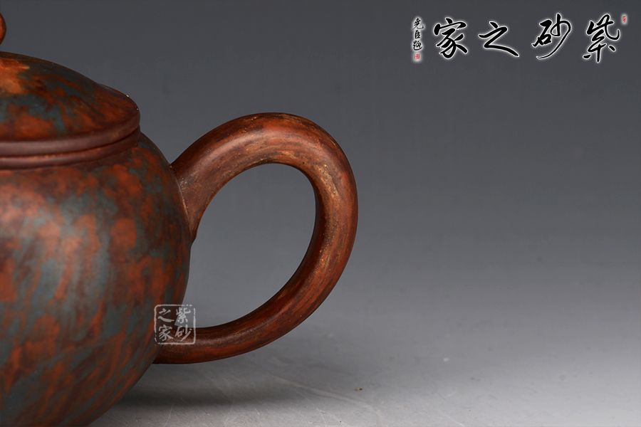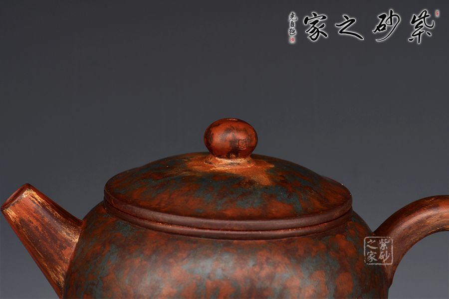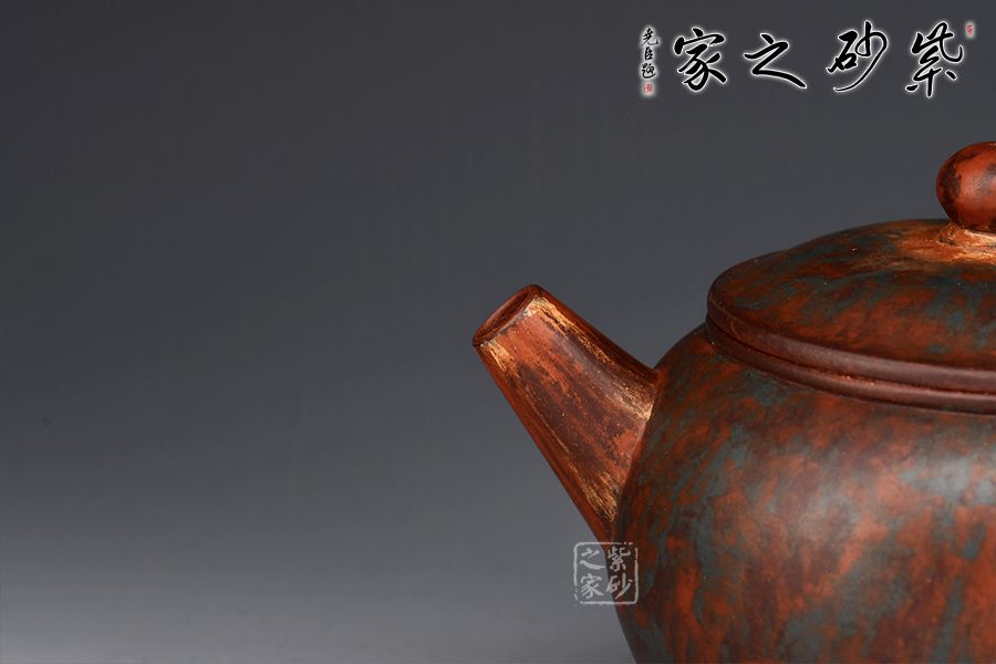 此款作品采用老師自創(chuàng)五色泥工藝,周身相似卻又不同。器型簡潔大方,直流嘴出水暴爽,耳形把張力十足,抓握舒適,壓蓋與壺口嚴(yán)絲合縫,氣密性極強。