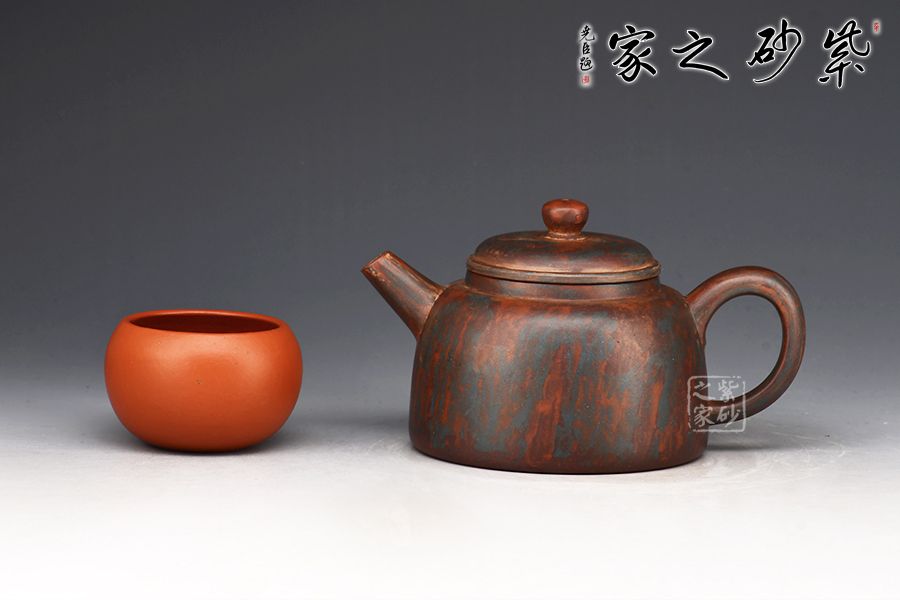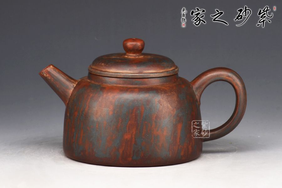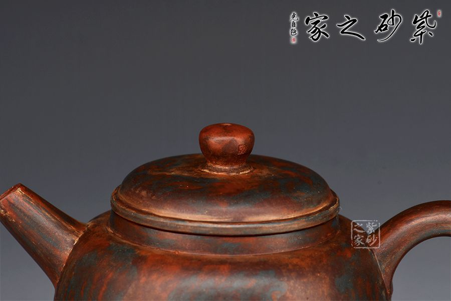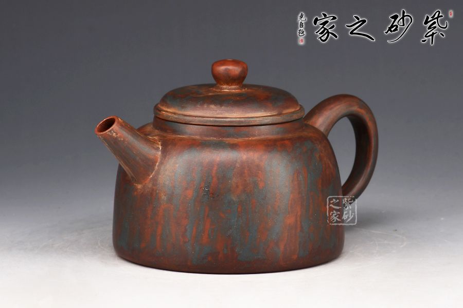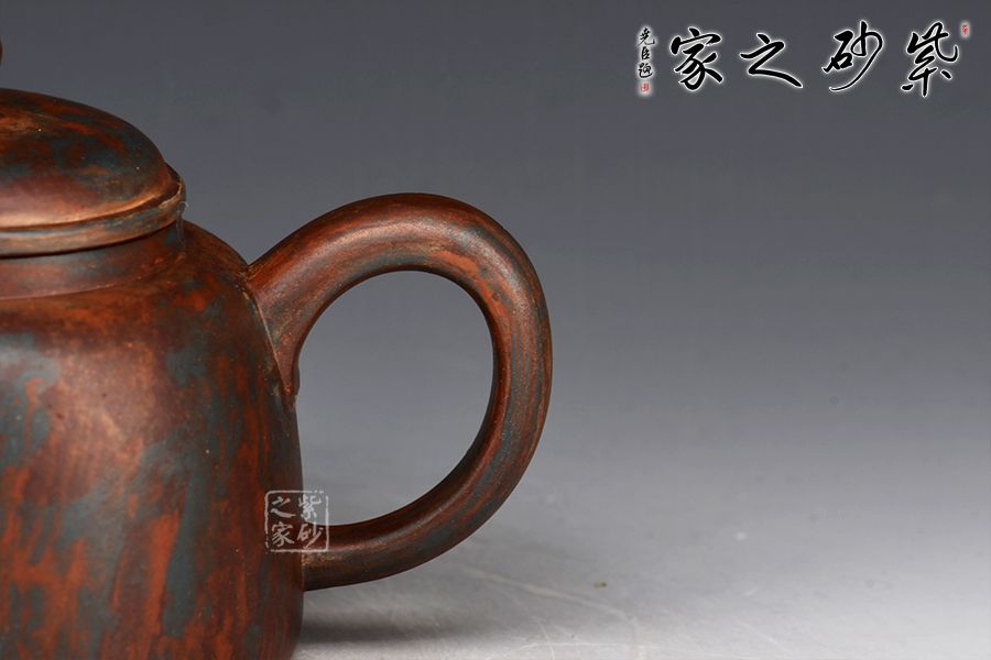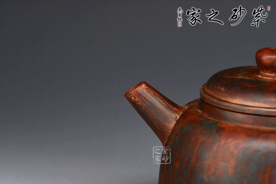 此款作品采用老師自創(chuàng)五色泥工藝,周身相似卻又不同。器型簡潔大方,直流嘴出水暴爽,耳形把張力十足,抓握舒適,壓蓋與壺口嚴(yán)絲合縫。