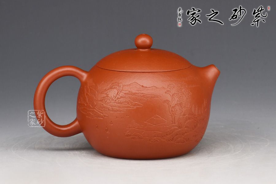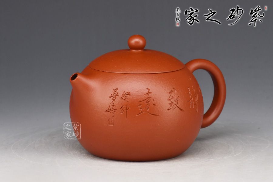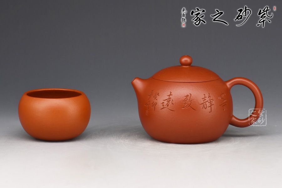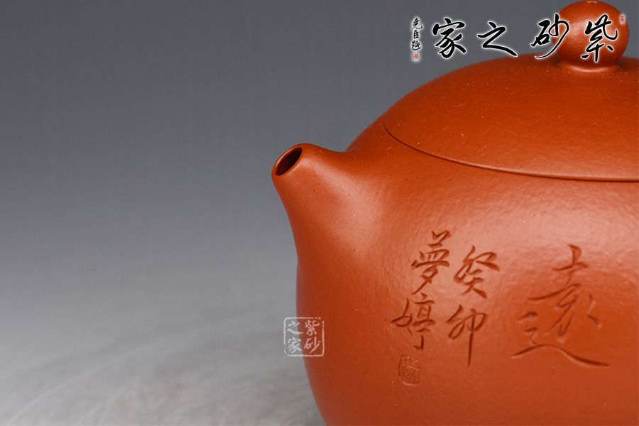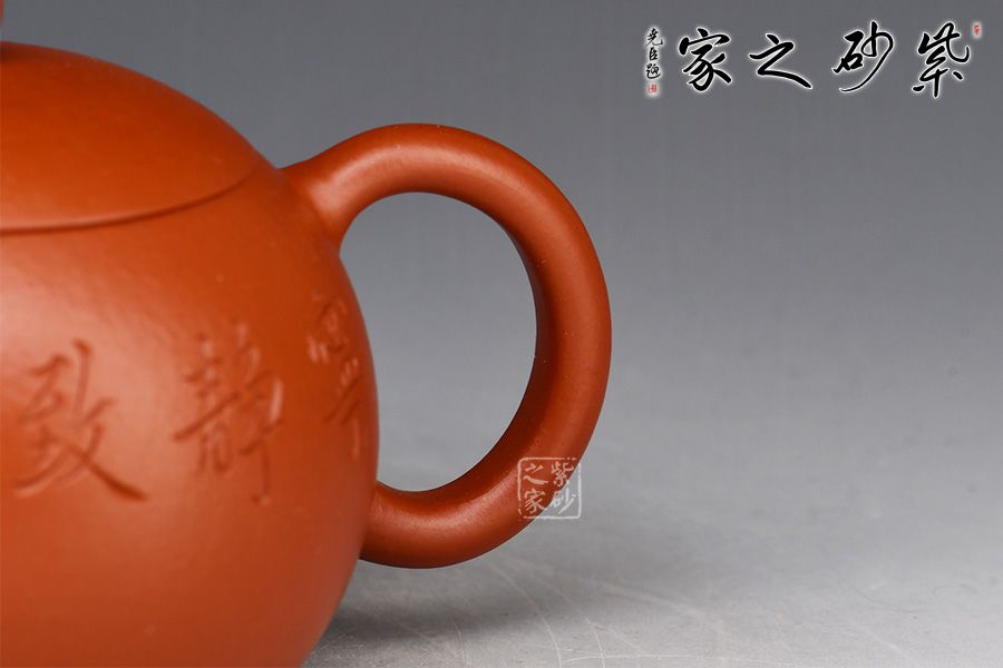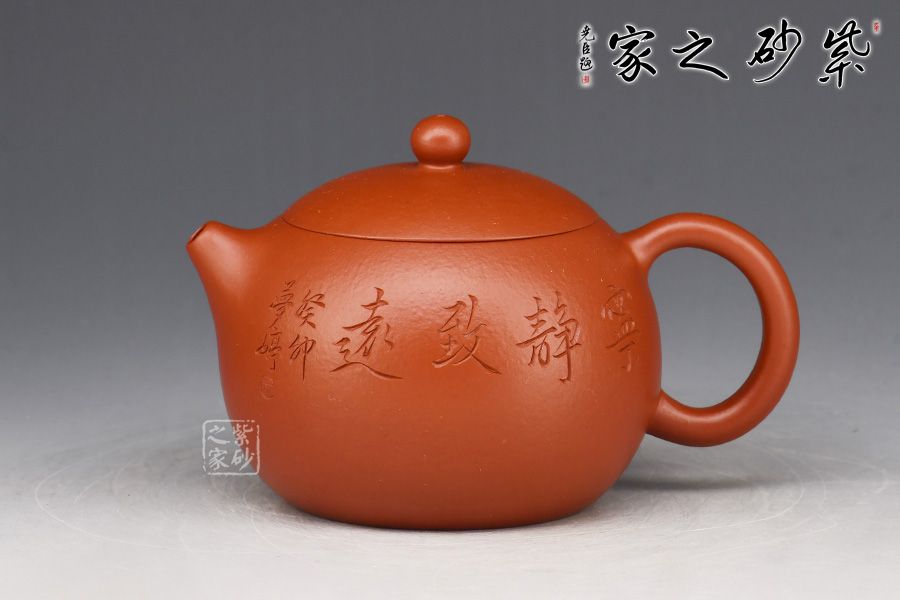 此款西施壺選用大紅袍泥全手工制成,紅潤(rùn)的泥質(zhì)使得整款作品更加的優(yōu)美,氣質(zhì)不俗。截蓋設(shè)計(jì)上下渾然一體。通體圓潤(rùn)飽滿如豐乳。壺身刻繪“寧靜致遠(yuǎn)”四字,體現(xiàn)老師超脫志趣,經(jīng)典器型,永不過時(shí)!