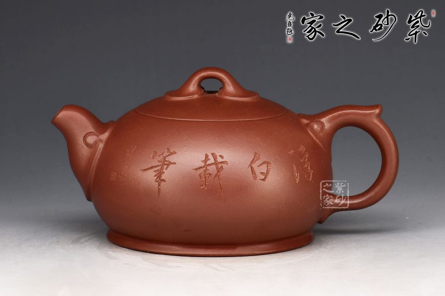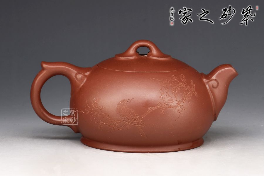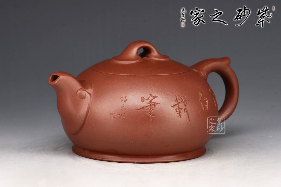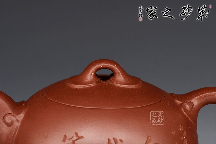 此壺名為妙心如意,寓意事事如意,壺身飽滿圓潤,彎流、橋鈕與壺把處皆以如意紋裝飾,使此壺簡約中見雅致。壺身刻繪為此壺增添了文人氣息,力薦!