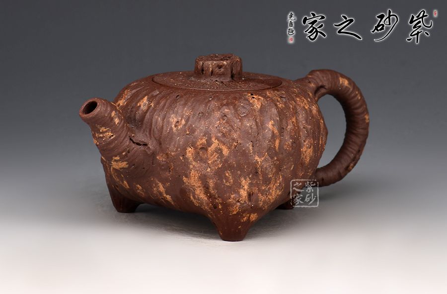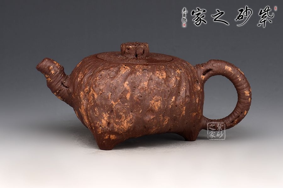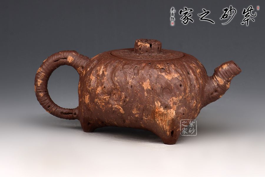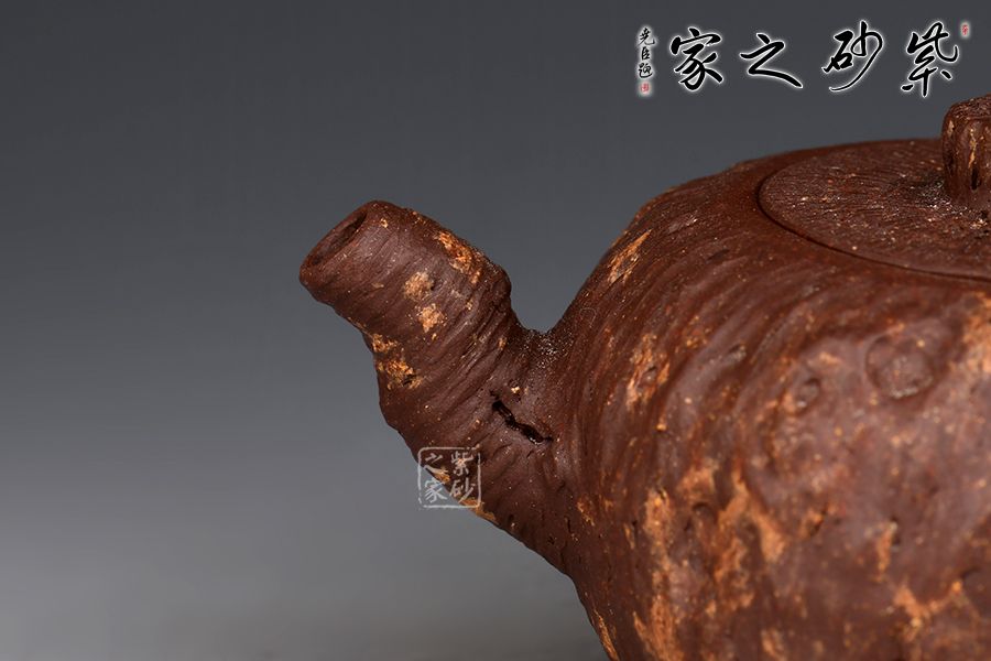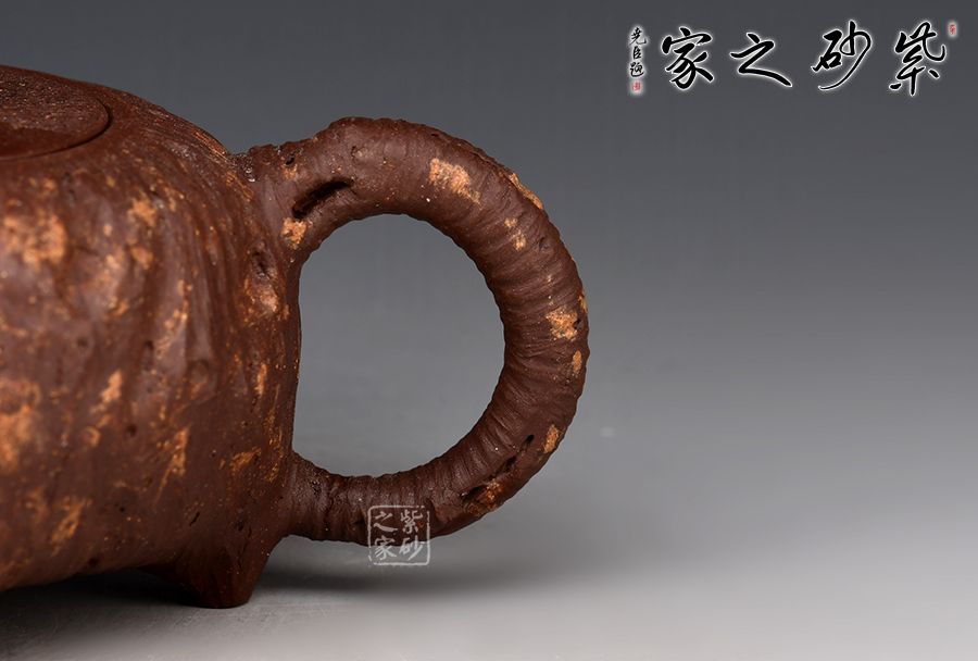此壺獨具匠心,壺嘴、壺把與壺鈕皆像斑駁的樹枝,嵌蓋與壺口連結緊密,氣密性極強。整壺很有特色的同時,又是一把殺茶利器!