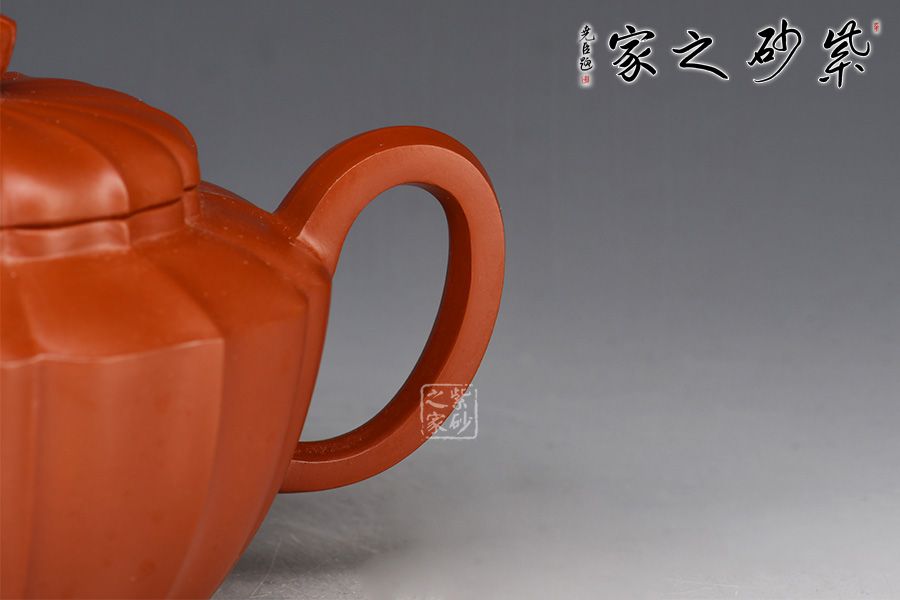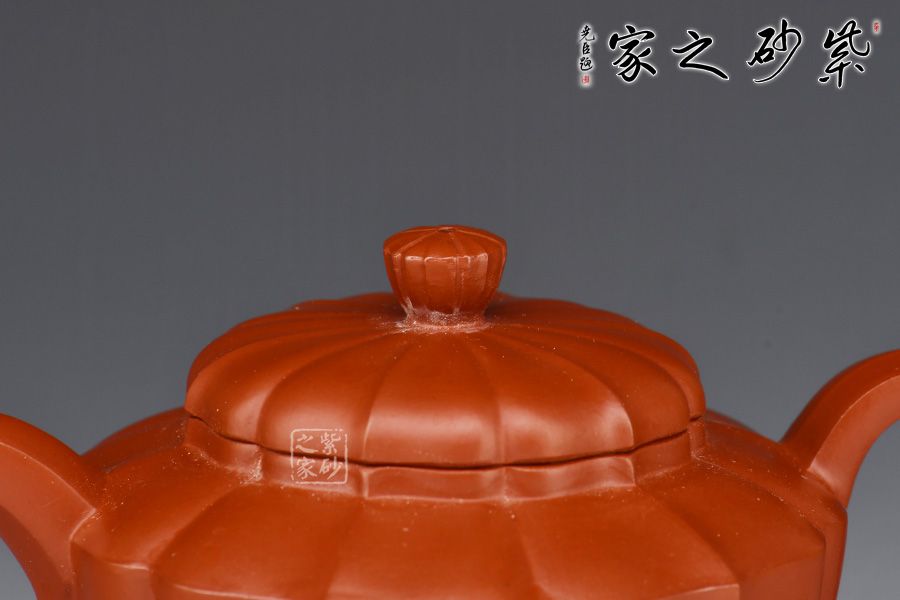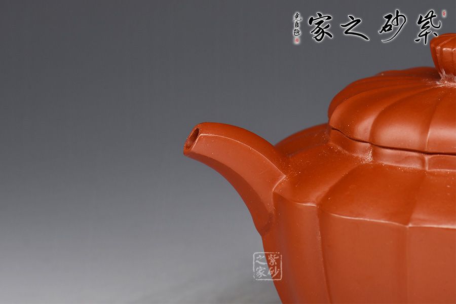 此壺通體凹凸起伏,規(guī)律有序,筋線凹凸相間,如菱花盛放,雅致如歌。筋紋隨著造型形體的變化而深淺自如,筋囊線條紋理清晰,制作精工,口蓋準(zhǔn)縫,任意調(diào)換壺蓋的方向合到口上,都很滑爽吻合。一彎嘴與耳形把的線條張力十足,左右相應(yīng)。壺鈕與壺身形狀相似, 造型簡潔優(yōu)美,實(shí)用性極強(qiáng),推薦入手。