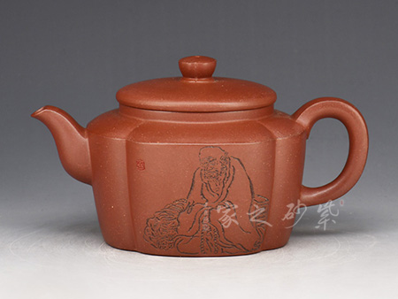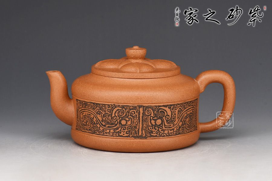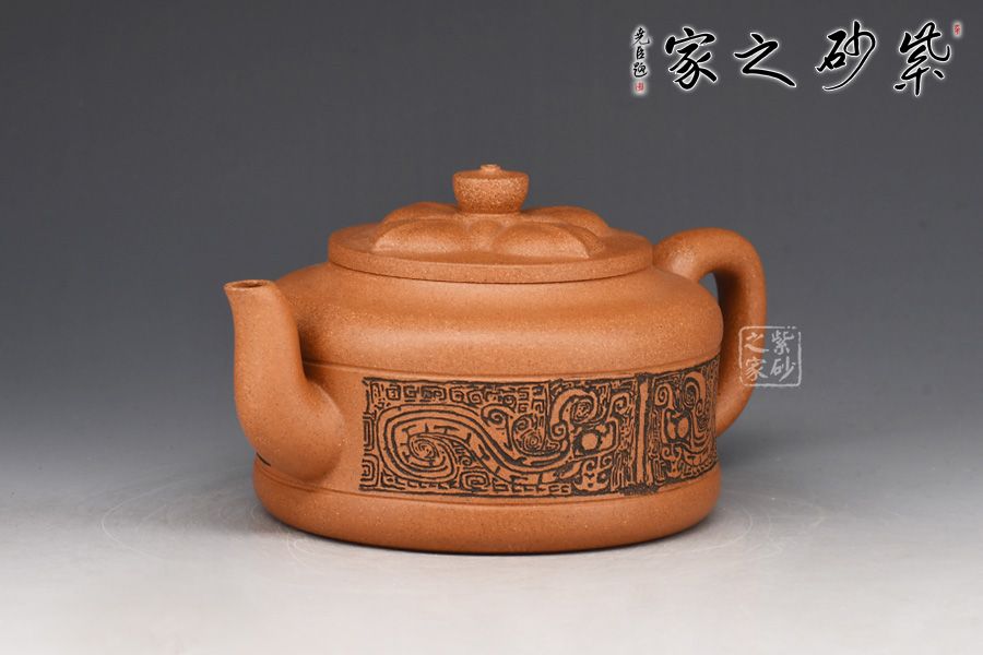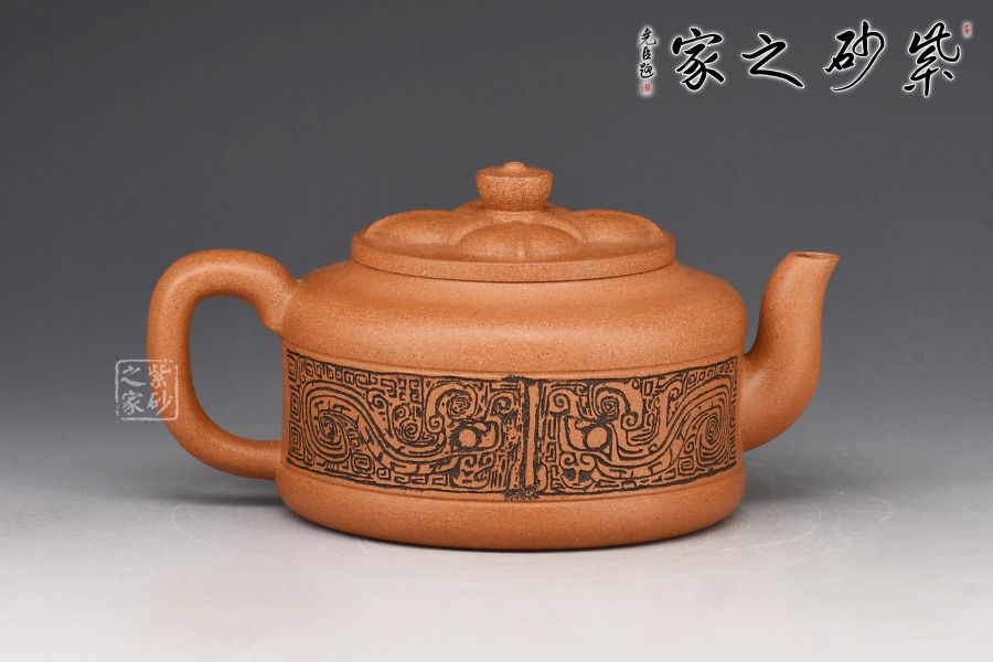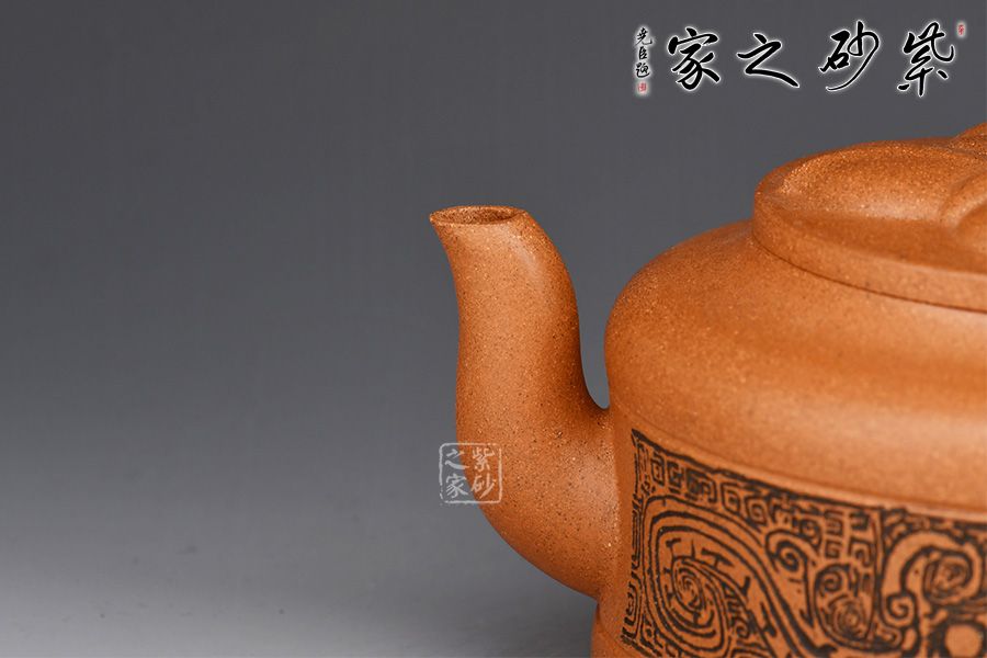 特點:原礦因含緞泥、紅泥、紫泥等諸多共生礦,陶之后,于深沉之“橙紅色”底上,滿佈五彩斑斕的粗細(xì)、深淺之紅、黃星斑點。