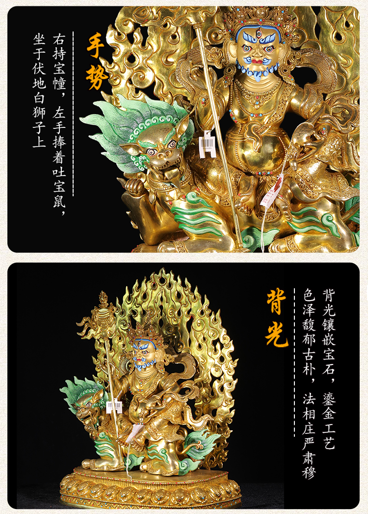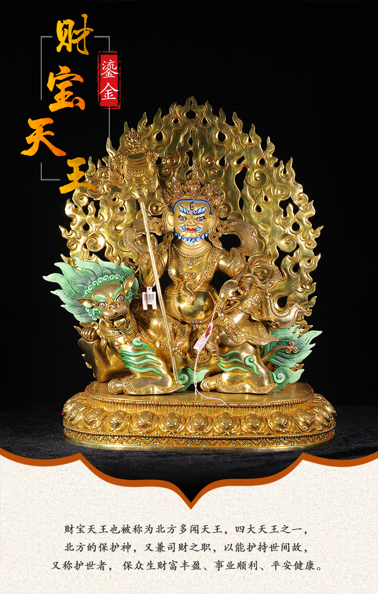 尼泊爾手工財寶天王紫銅鎏金工藝家用擺件49cm