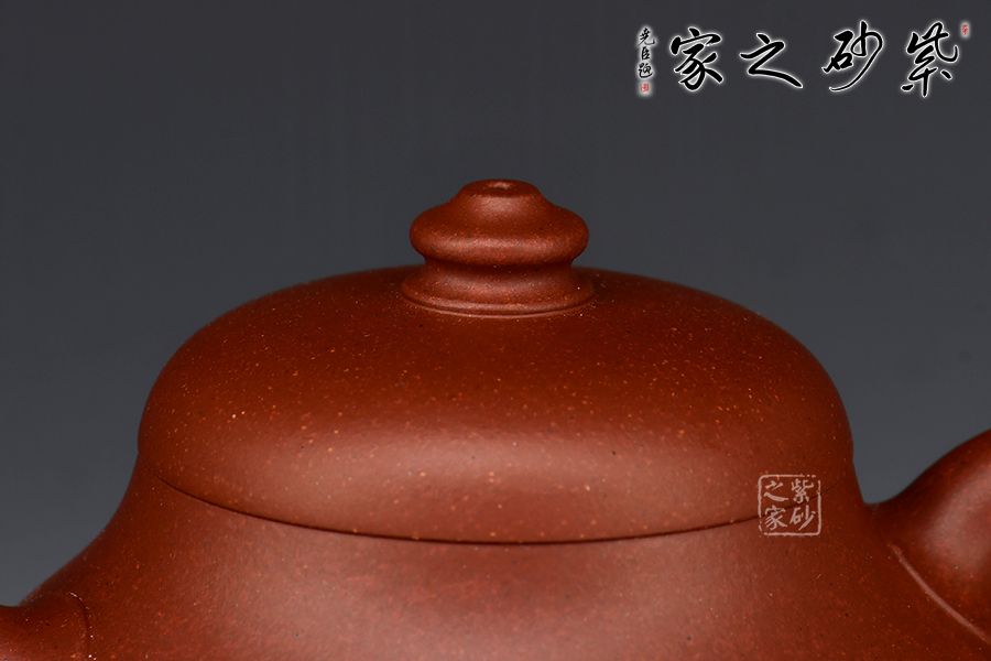 此壺采用原礦紅皮龍為胎,質(zhì)堅而色潤,造型經(jīng)典耐看,線條簡潔流暢,一派古樸內(nèi)斂之氣。
