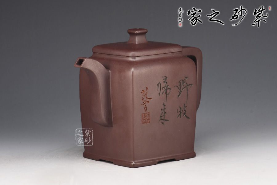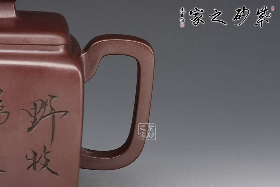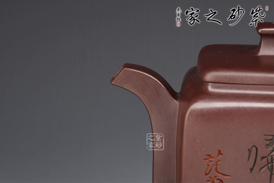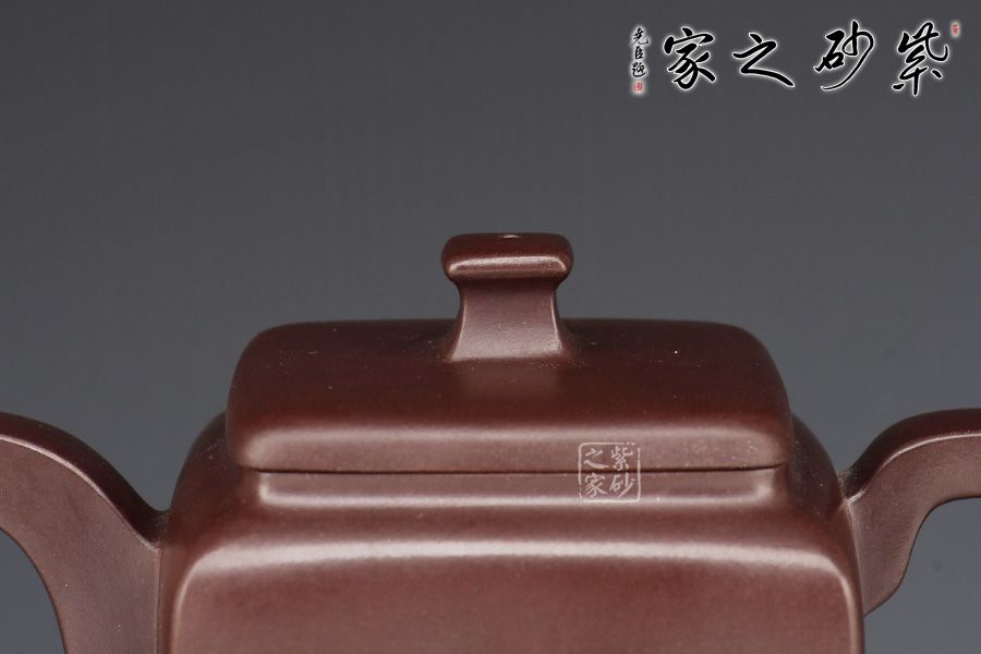 此壺精選紫泥制成,四方壺身挺拔俊朗,如氣度非凡的君子,棱角之間轉(zhuǎn)換圓潤,張弛有度。肩、頸至蓋極富層次感,柱形鈕方便拿捏。三彎流、耳把方中帶圓,為整壺添了一絲委婉的氣息。整體工藝精到,線條曲直并蓄,方器的挺括姿態(tài)及美感都表現(xiàn)得非常到位。