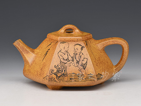 黃金砂,是以黃龍山的黃金段泥為胎,黃,紅,白,黑,諸砂掩映,具有獨(dú)特的帝王之色,此礦料蘊(yùn)藏量極為稀少,珍貴,容易泡養(yǎng),包漿瑩潤(rùn),寶光流動(dòng),帝王之氣十足。