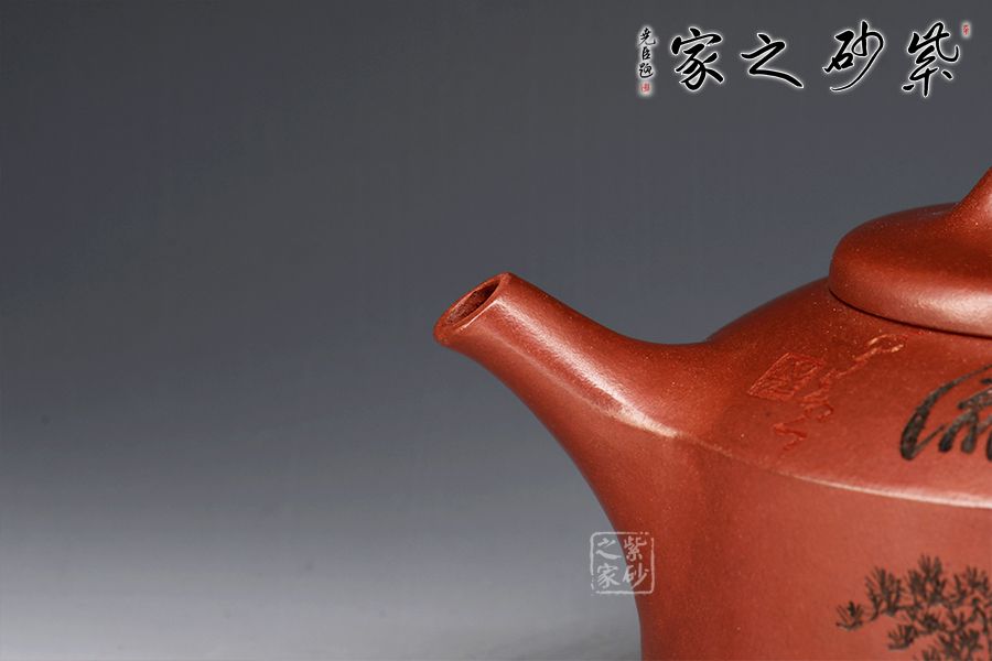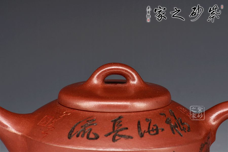 所謂鏡瓦,是以漢瓦、銅鏡取材造壺,源于生活而又高于生活。作品在傳統(tǒng)鏡瓦的基礎(chǔ)上,進行大膽創(chuàng)新,保留老味的同時,又融入了現(xiàn)代審美。壺身直似瓦筒,口大、蓋平似銅鏡,橋鈕,壺肩線條與流把想貫穿,蘊含生生之節(jié)奏。作品線條清晰利落,端莊而穩(wěn)健,可見作者功力之深厚。