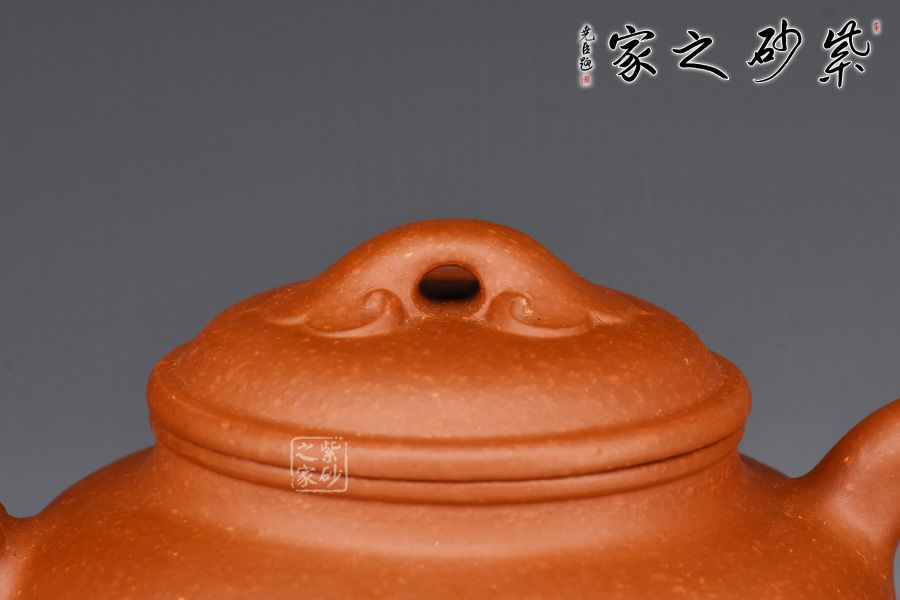 壺蓋壓在壺身,嚴(yán)絲合縫,做工精良,拱橋橋鈕,精致大氣,圍繞的如意裝飾自然美觀。