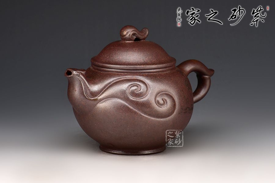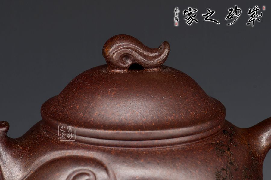 赤龍煥彩,采用家藏大紅袍朱泥底料結(jié)合極其珍貴黃金段料研磨成顆粒,請(qǐng)教原紫砂廠練泥車(chē)間老師傅,進(jìn)行多次配比實(shí)驗(yàn),燒成后黃金段顆粒自然排列有如龍之金鱗,融合的大紅袍朱泥特性,故名赤龍煥彩。