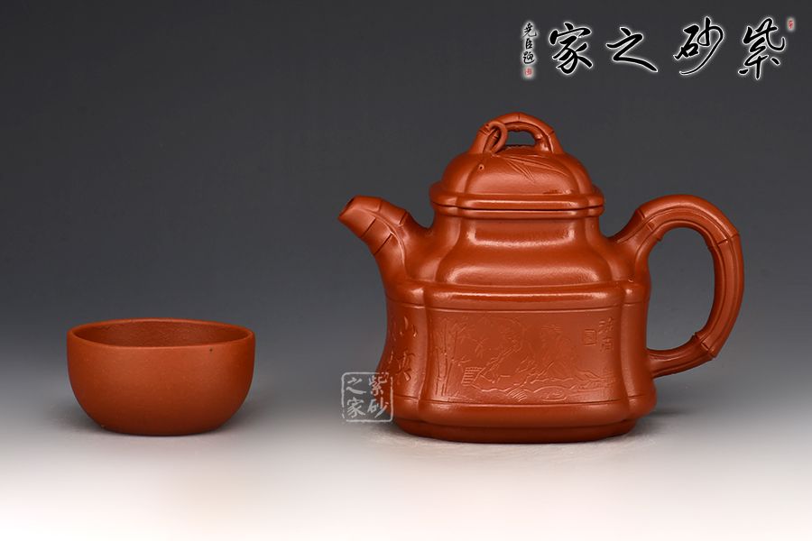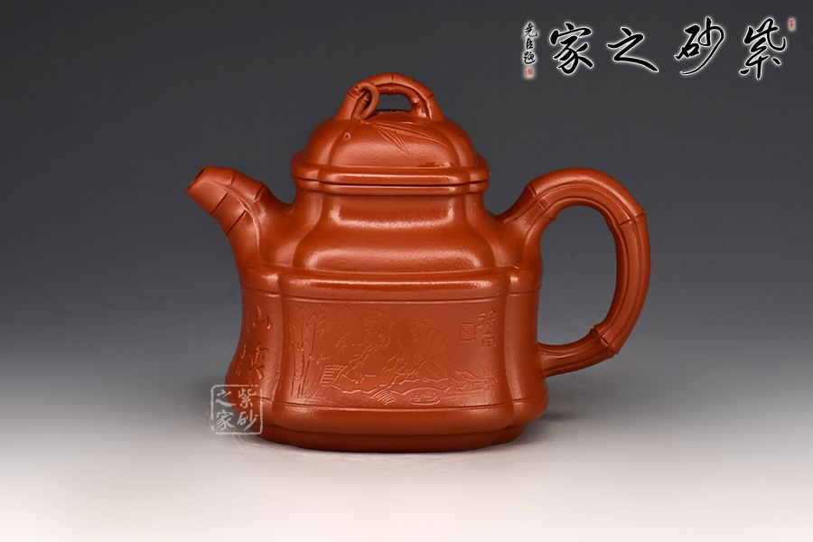 簡介:朱紅微嫣具綿密柔滑之砂感,水色溫潤度中等;熱水沖淋立展嬌嫩鮮紅特色,壺身游移紫光遽現(xiàn),神秘迷人風韻令愛壺人神醉。以之沖茗之茶湯明亮活潑、快意果決、易展揚香而聚甘柔甜。朱泥原礦,胎骨堅硬而沉實,色澤朱紅略泛桔光,溫潤透明質(zhì)感之佳,與清中期頂級朱泥無異;大器無法燒成,小品燒成后穀皺紋隱現(xiàn),頗具古代朱泥風華。趙莊的朱泥原礦灰、白、帶黃棕色,呈片狀結(jié)構(gòu);本原礦由于泥性較重,故較不易成砂,需採自嫩泥礦中較堅硬的部份(年代較久, 且成陶后色調(diào)較紅豔,古稱“石骨”),再經(jīng)敝古陶研究所繁複全手工的練製程序后,始能成陶!
