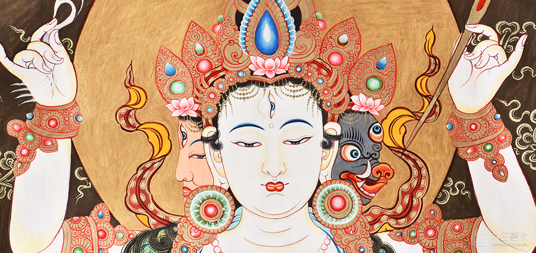 | 唐卡“師傅”開臉,筆路穩(wěn)重流暢。體現(xiàn)完美天人相,可見佛菩薩慈眉善目,賦予唐卡畫像生的靈氣。 | 細節(jié)決定品質(zhì),點睛之筆不到位影響整體美觀,五官比例不協(xié)調(diào),面目呆板,缺乏靈氣。 |
