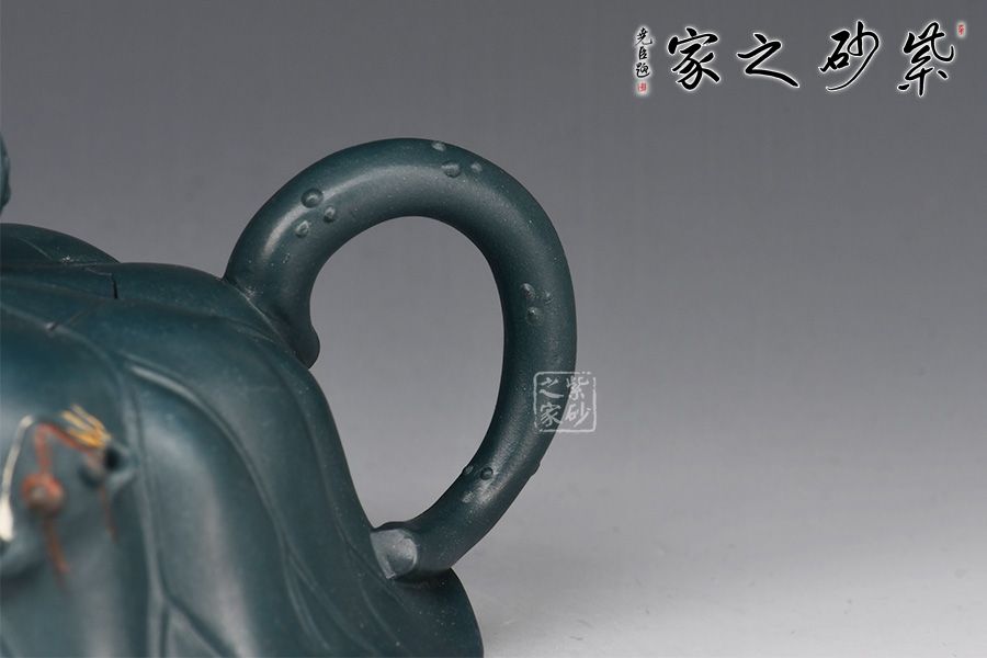 特點(diǎn):泥色特異,青藍(lán)色中略泛綠光,清秀獨(dú)特;稍一泡養(yǎng),色調(diào)更形穩(wěn)實(shí),溫潤透明,變化甚巨,玩賞深具成就感。