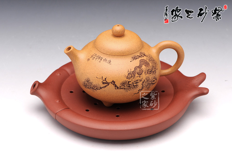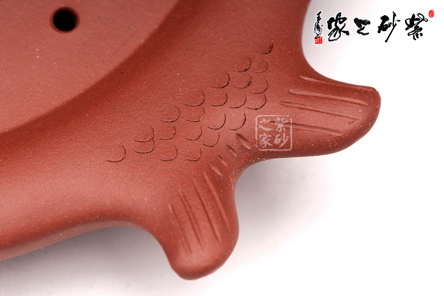 這是一款壺托,是盧寧剛老師為他的作品大留香壺所設(shè)計(jì)的配套壺托,整體為魚的造型,寓意“年年有余”,一壺一托,相映成趣。