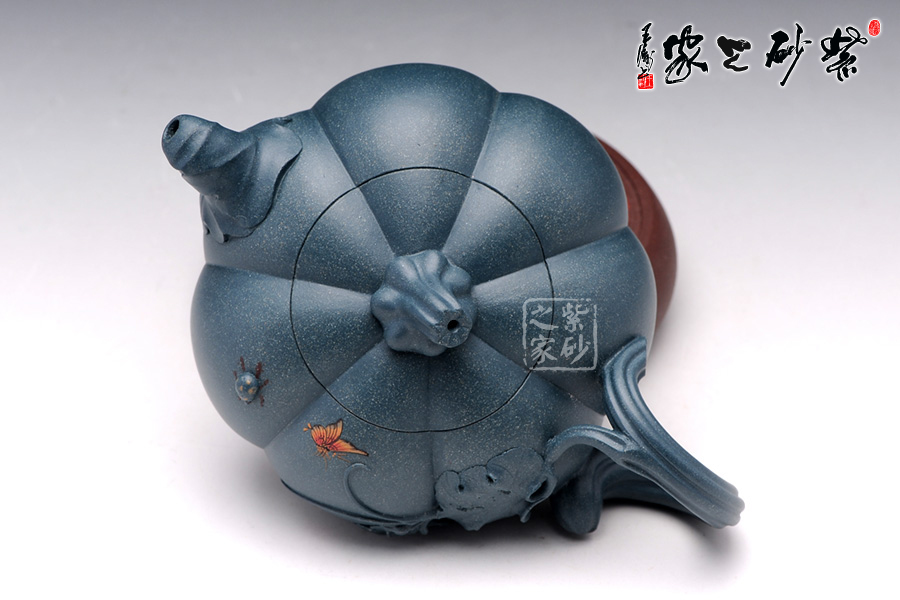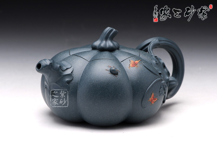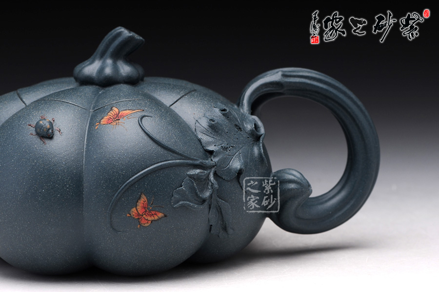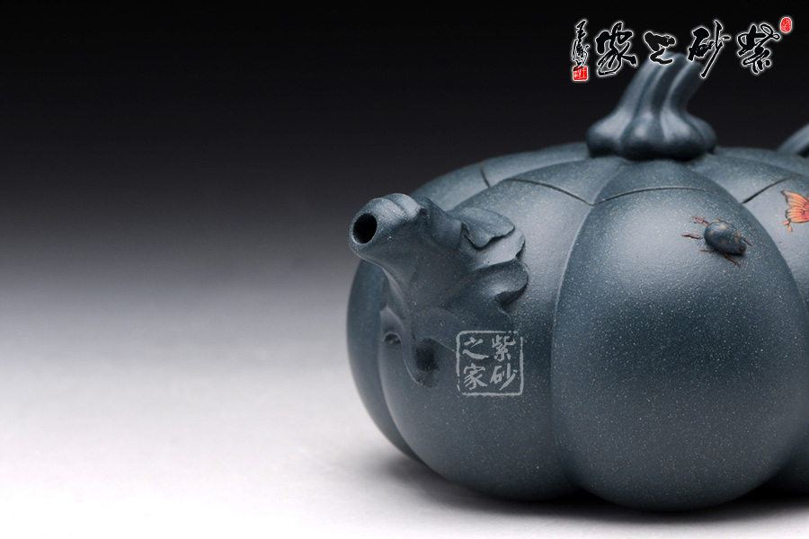 整個筋紋紋路非常明理清晰,做工極為精細;壺嘴、壺把、壺蓋、壺身都是用筋紋起線,使整個壺的造型協(xié)調統(tǒng)一;此壺通體流線型設計,干凈利落,造型能給人明快爽利的感覺,生命之律動;此壺為秋陽下的南瓜,渾樸厚重,結練壯美,兩只蝴蝶與七星瓢蟲栩栩如生,生動活潑;經秋霜而道勁,聚元氣而充沛,用它品茗,豈不是得天地調和的甘露。