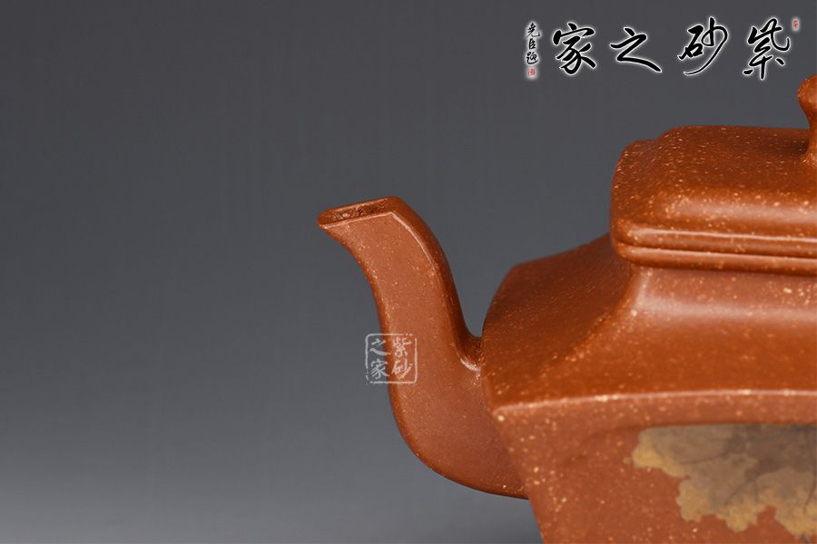 泥性:原礦因含緞泥、紅泥、紫泥等諸多共生礦,陶之后,于深沉之“橙紅色”底上,滿佈五彩斑斕的粗細(xì)、深淺之紅、黃星斑點(diǎn)。