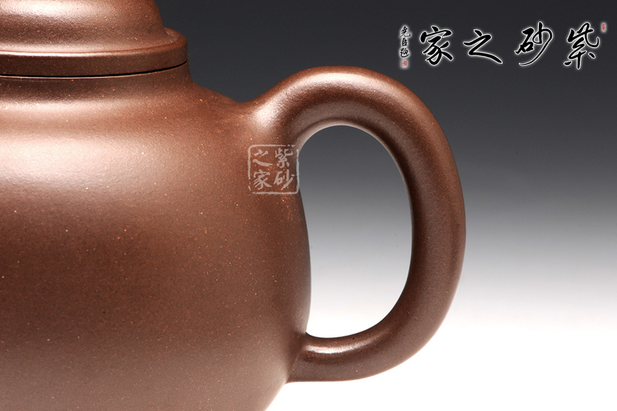 華亭壺制作于八十年代,承襲傳統(tǒng)器型,用料優(yōu)質(zhì),壺身細膩秀雅,一身素器,用簡潔的形態(tài)來表達此壺自身的生命力,壺嘴、壺把與壺蓋和諧統(tǒng)一, 使得壺體各部分有優(yōu)美比例,表現(xiàn)出精湛的制作技巧和優(yōu)良的實用功能;加底設計使得此壺更加有視覺效果,立體感更強,此壺素雅簡潔卻最是能表現(xiàn)出藝人的基本功力和文學素養(yǎng)!