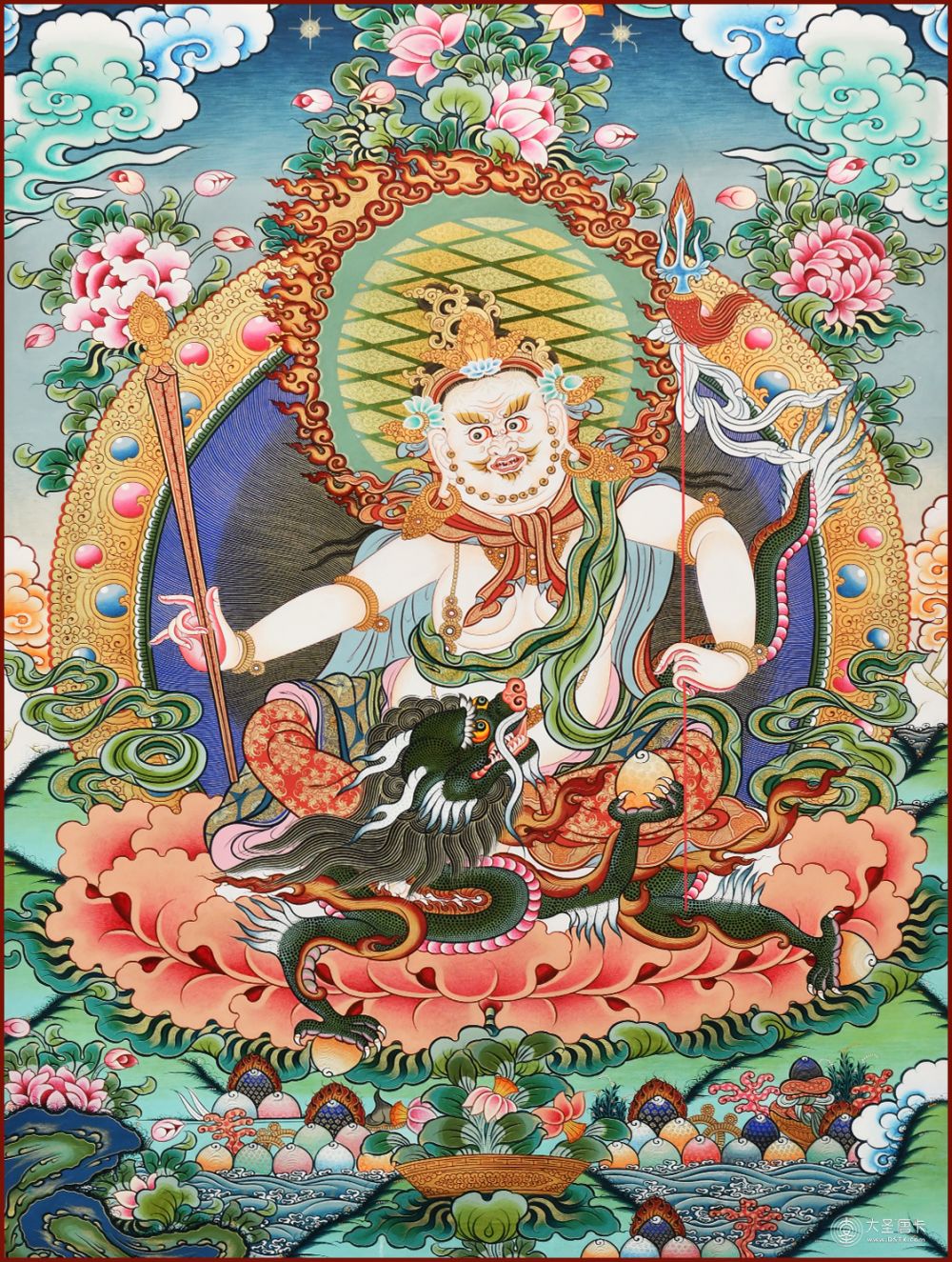產(chǎn)地:熱貢 工藝:彩唐 創(chuàng)作年份: 題材:白財(cái)神 繪制時(shí)間:0日 尺寸:*65cm 裝裱:鏡片 材質(zhì): 使用場(chǎng)地:走廊