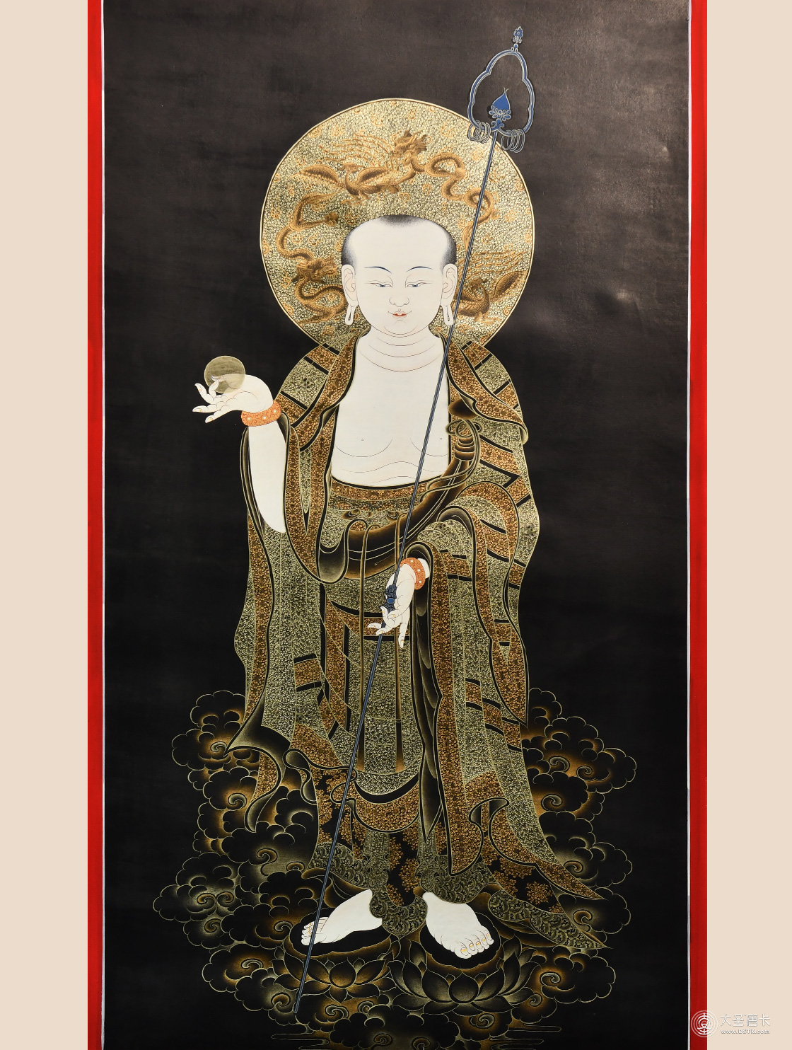 產(chǎn)地:熱貢 工藝:彩唐 創(chuàng)作年份: 題材:地藏王菩薩 繪制時間:0日 尺寸:*90cm 裝裱: 材質(zhì): 使用場地:走廊