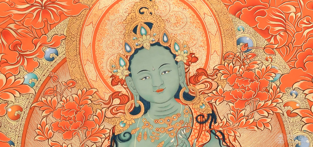 綠度母,藏語叫“卓姜”,是從觀音菩薩的眼淚中化現(xiàn)出來的,所以最慈悲。綠度母為所有度母之主尊,總攝其余二十尊化身之所有功德。因其救度之迅速、摧滅魔業(yè)之勇猛,故又稱作“救度速勇母”。