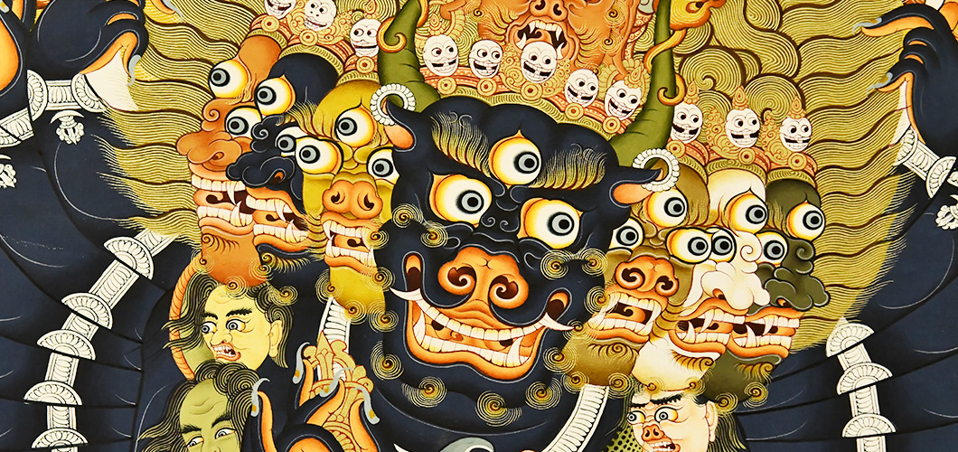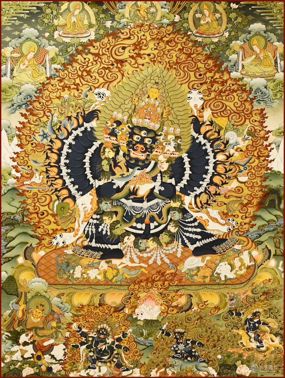 大威德金剛,大威德金剛是格魯派密宗所修本尊之一,因其能降服惡魔,故稱大威,又有護(hù)善之功,故又稱大德。梵名“閻魔德迦”(梵文:Yamāntaka),藏語為”多吉久謝”, 日本東密稱為“大威德明王”。也叫閻曼德迦、怖畏金剛、牛頭明王。