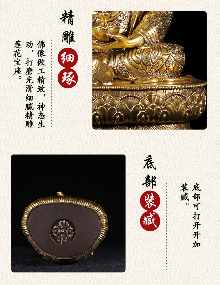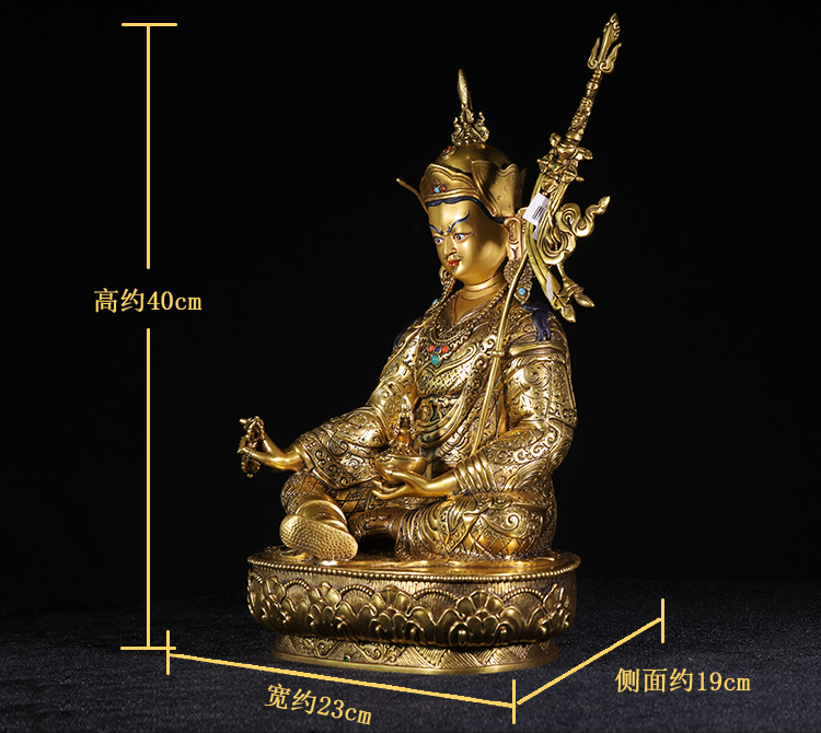 尼泊爾手工蓮花生大士紫銅鎏金工藝居家擺放40cm