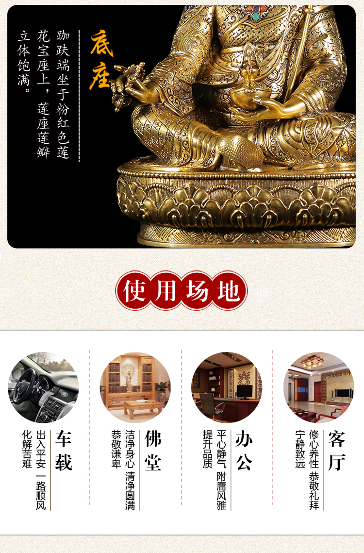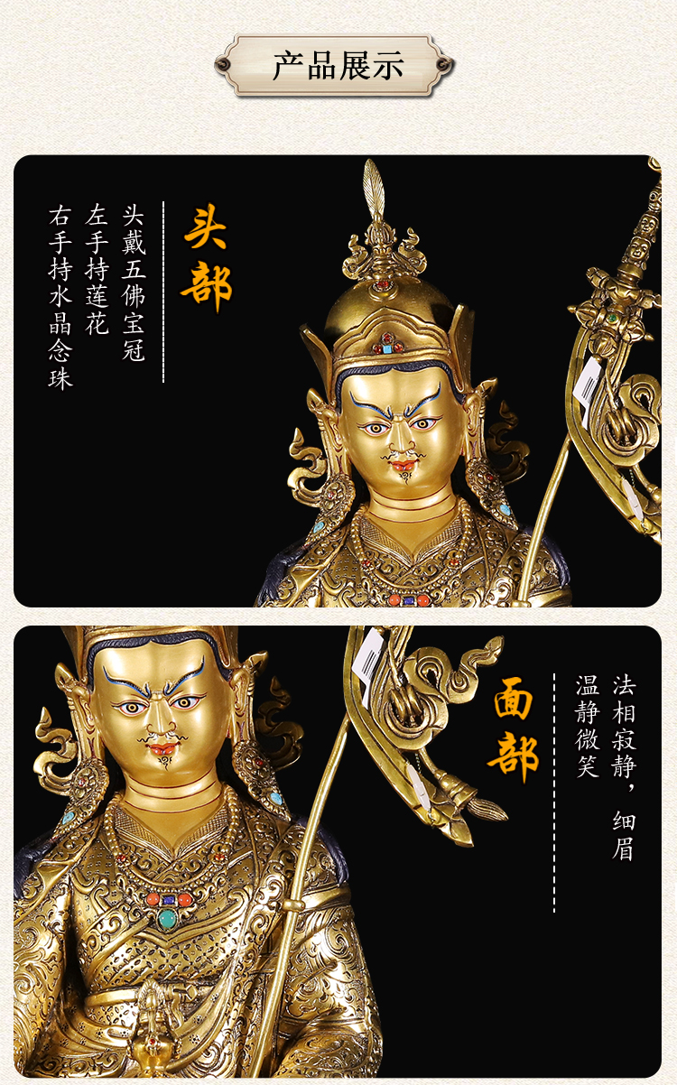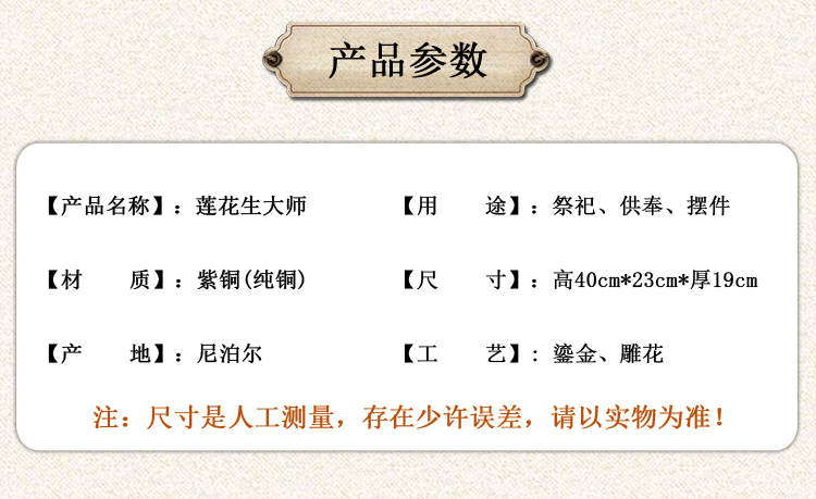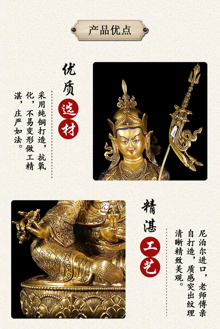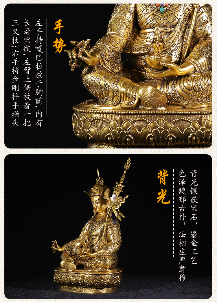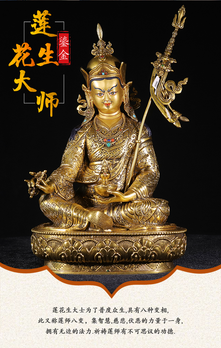 產(chǎn)地:尼泊爾 工藝:鎏金 創(chuàng)作年份:2022 題材:蓮花生大師 繪制時(shí)間:0日 尺寸:19*23*44cm 重量:0 g 材質(zhì):紫銅 使用場(chǎng)地: