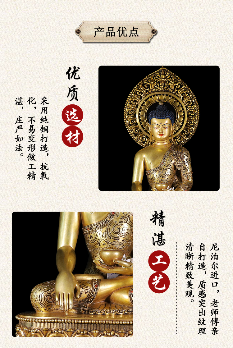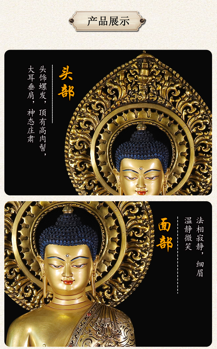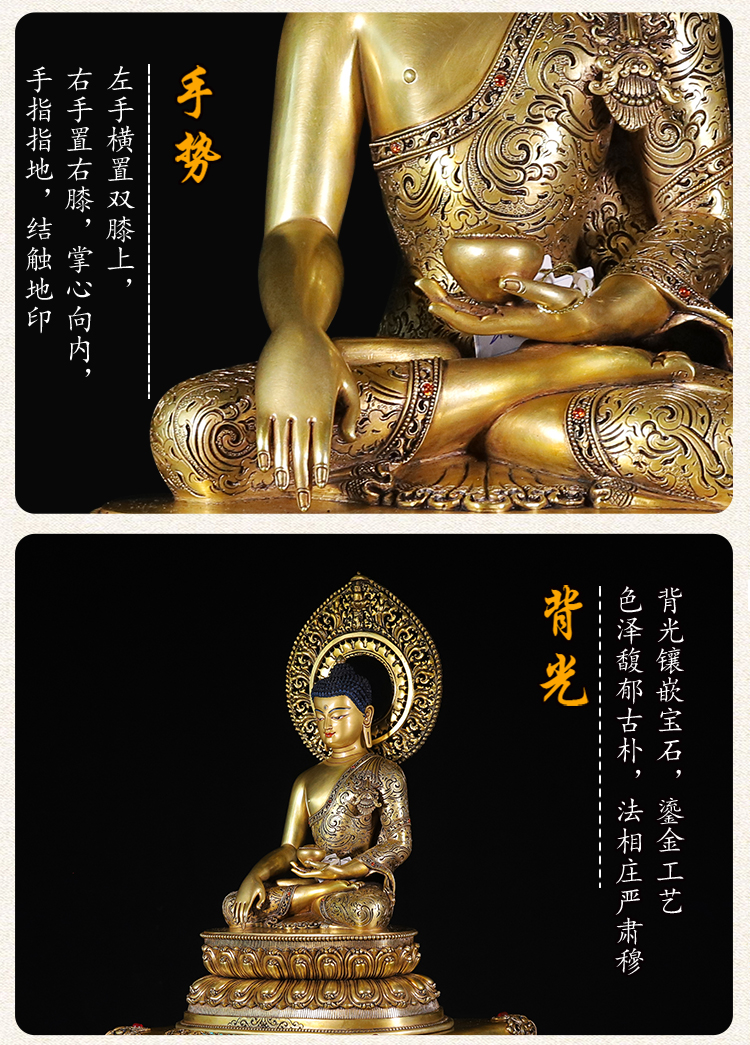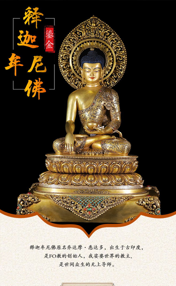 產(chǎn)地:尼泊爾 工藝:鎏金 創(chuàng)作年份:2023 題材:釋迦牟尼 繪制時(shí)間:0日 尺寸:23*30*40cm 重量:0 g 材質(zhì):紫銅 使用場(chǎng)地: