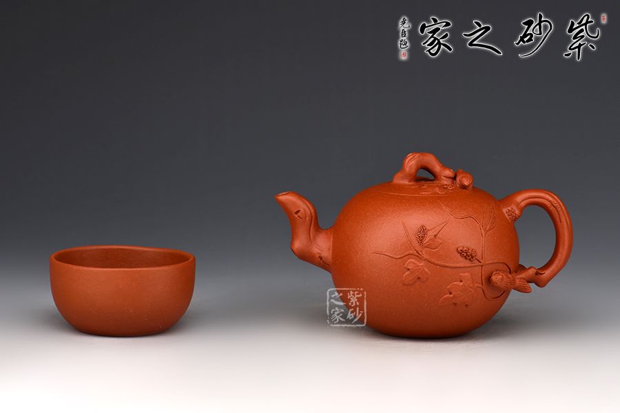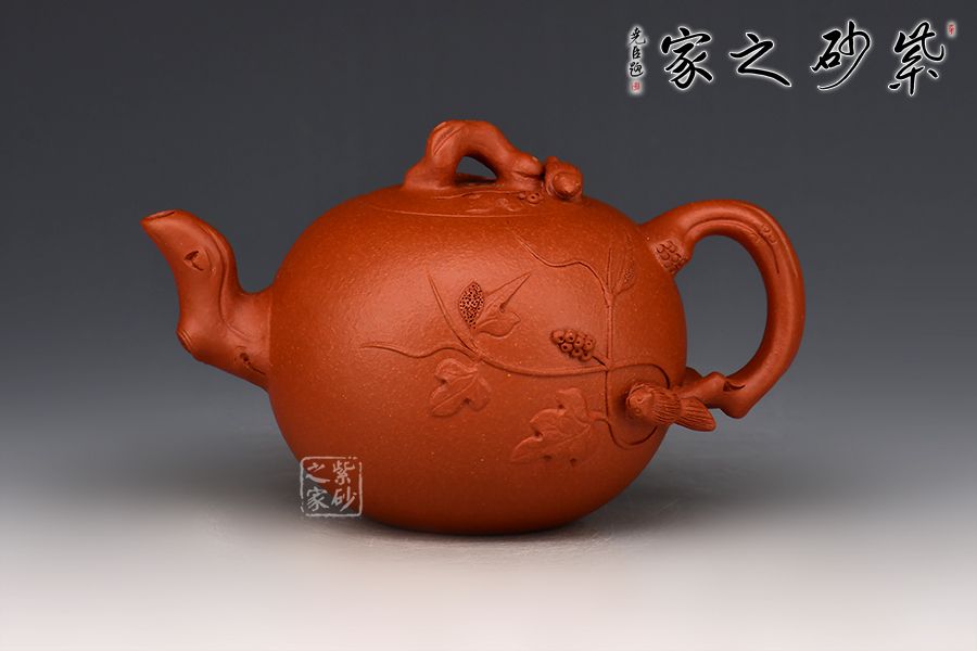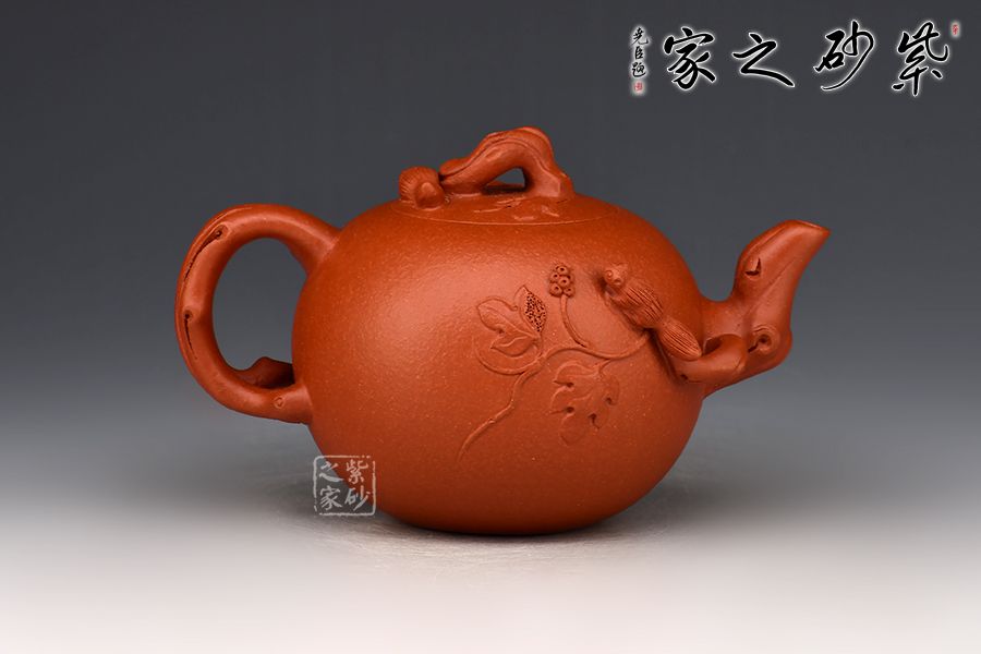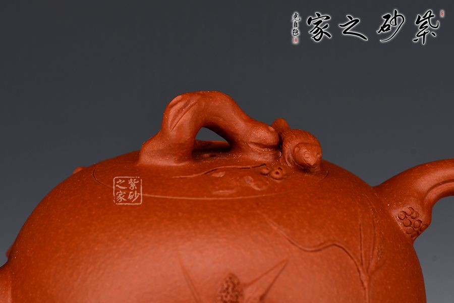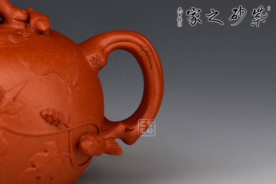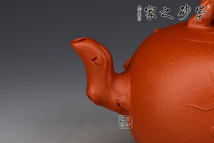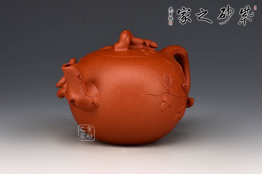 特點:原礦因含緞泥、紅泥、紫泥等諸多共生礦,陶之后,于深沉之“橙紅色”底上,滿佈五彩斑斕的粗細(xì)、深淺之紅、黃星斑點。