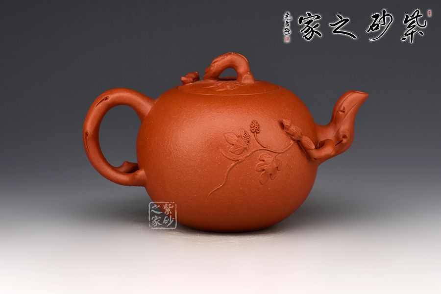 特點(diǎn):原礦因含緞泥、紅泥、紫泥等諸多共生礦,陶之后,于深沉之“橙紅色”底上,滿佈五彩斑斕的粗細(xì)、深淺之紅、黃星斑點(diǎn)。