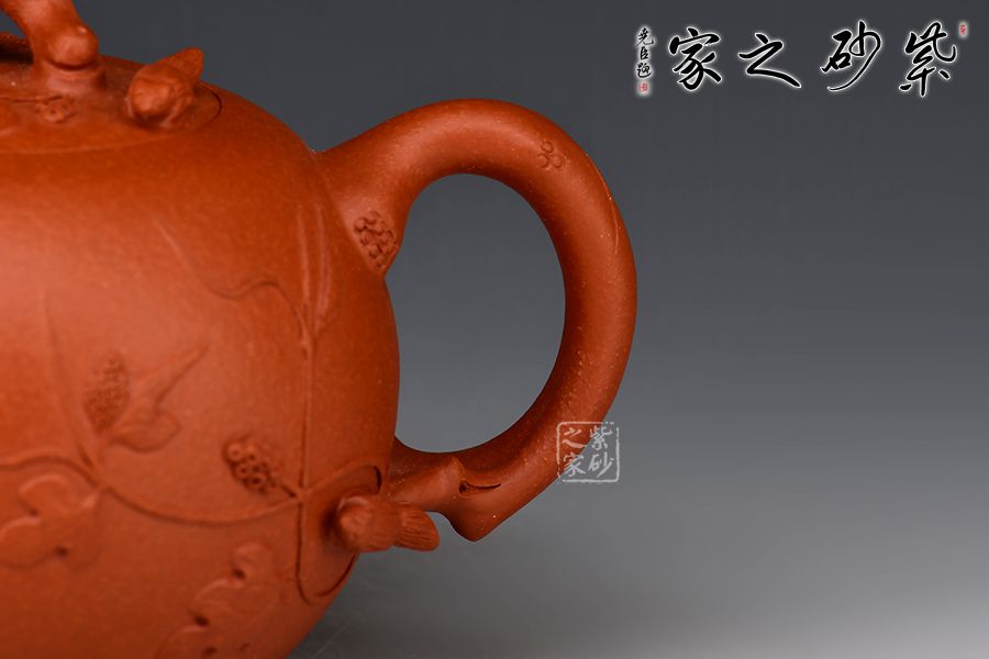 泥性:原礦因含緞泥、紅泥、紫泥等諸多共生礦,陶之后,于深沉之“橙紅色”底上,滿佈五彩斑斕的粗細(xì)、深淺之紅、黃星斑點(diǎn)。