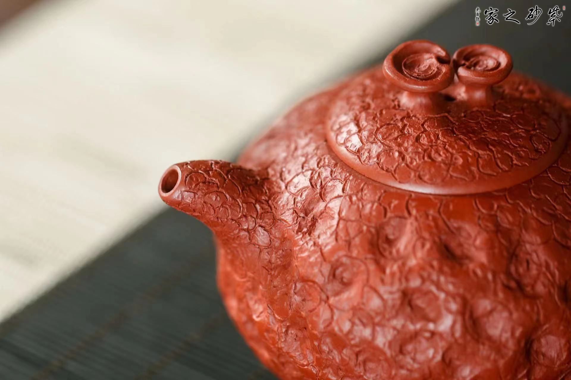 特點(diǎn):質(zhì)感綿密、緊實(shí)細(xì)緻,持之扎實(shí)沉重、紅潤豔麗,泥中極品,無以倫比;泥胚含少許原礦顆粒,沖淋熱水后色變極大,呈紅中帶紫,養(yǎng)壺易現(xiàn)“包漿”之美。