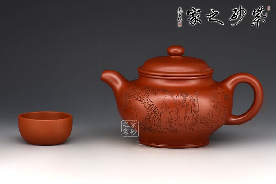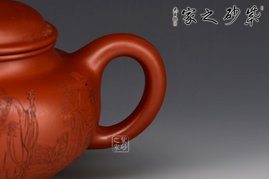 特點:質感綿密、緊實細緻,持之扎實沉重、紅潤豔麗,泥中極品,無以倫比;泥胚含少許原礦顆粒,沖淋熱水后色變極大,呈紅中帶紫,養(yǎng)壺易現(xiàn)“包漿”之美。