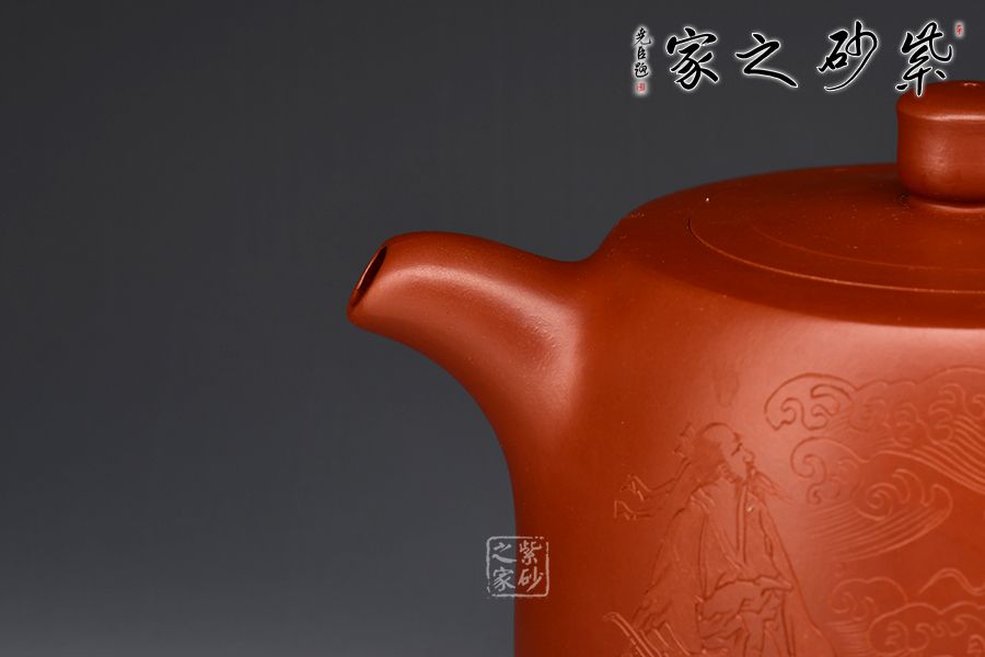 特點:質(zhì)感綿密、緊實細緻,持之扎實沉重、紅潤豔麗,泥中極品,無以倫比;泥胚含少許原礦顆粒,沖淋熱水后色變極大,呈紅中帶紫,養(yǎng)壺易現(xiàn)“包漿”之美。