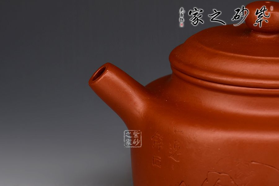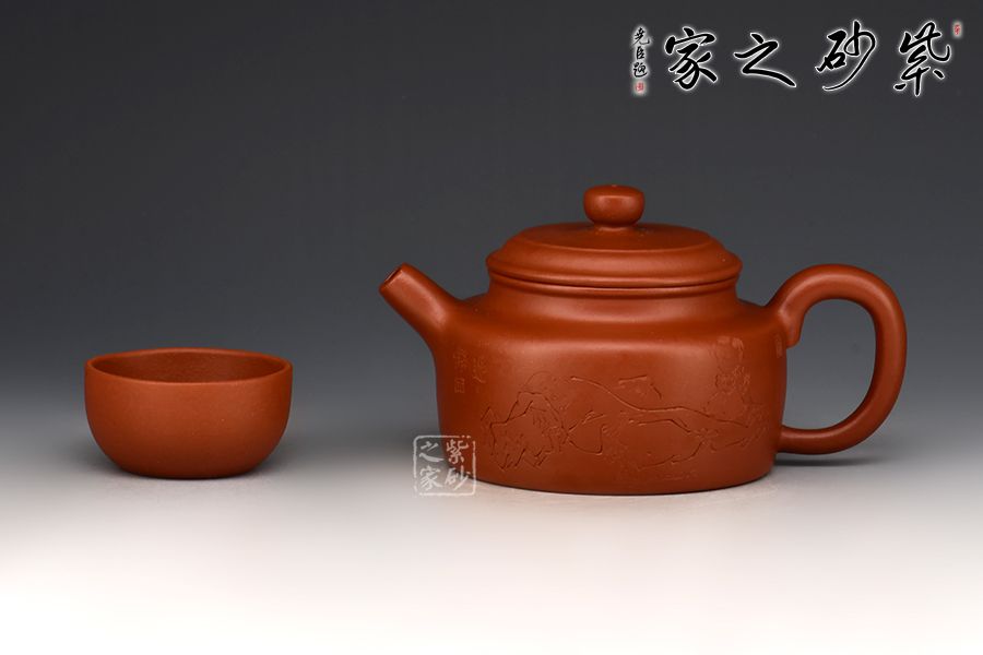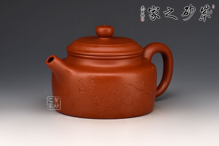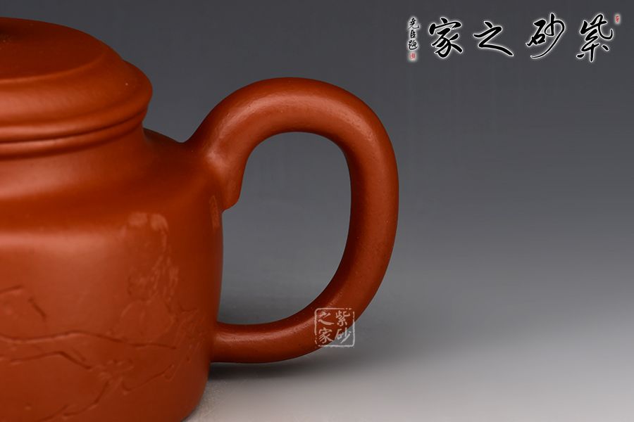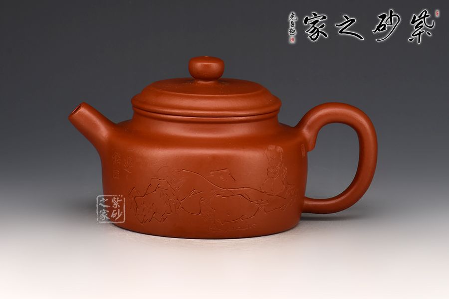 特點:質(zhì)感綿密、緊實細(xì)緻,持之扎實沉重、紅潤豔麗,泥中極品,無以倫比;泥胚含少許原礦顆粒,沖淋熱水后色變極大,呈紅中帶紫,養(yǎng)壺易現(xiàn)“包漿”之美。