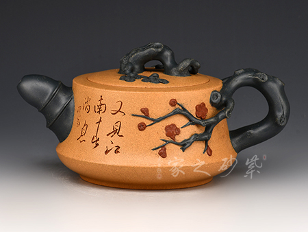 泥性:感甜嫩綿密,質(zhì)堅而溫潤,呈近田黃色調(diào),為江蘇宜興趙莊山系朱泥礦~黃石黃之共生礦,經(jīng)挑揀練製而成,因含鐵量只達(dá)6%左右,致陶之后呈“金田黃色”。