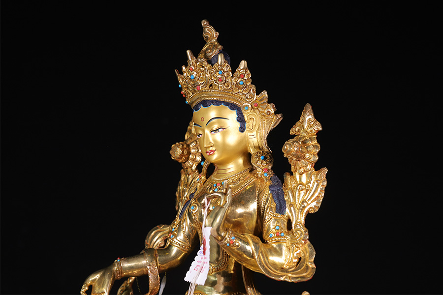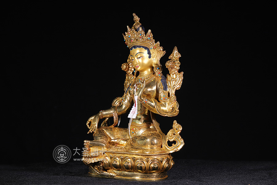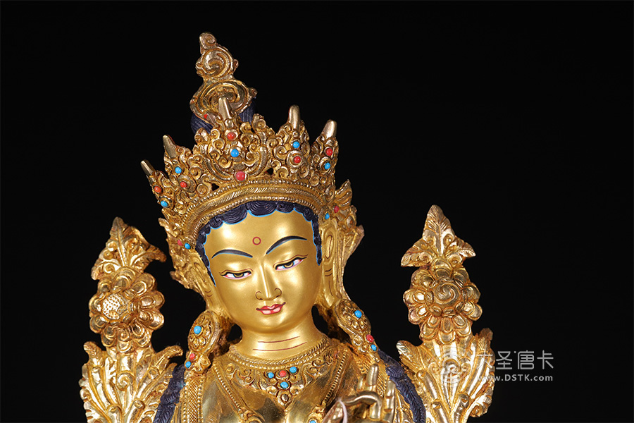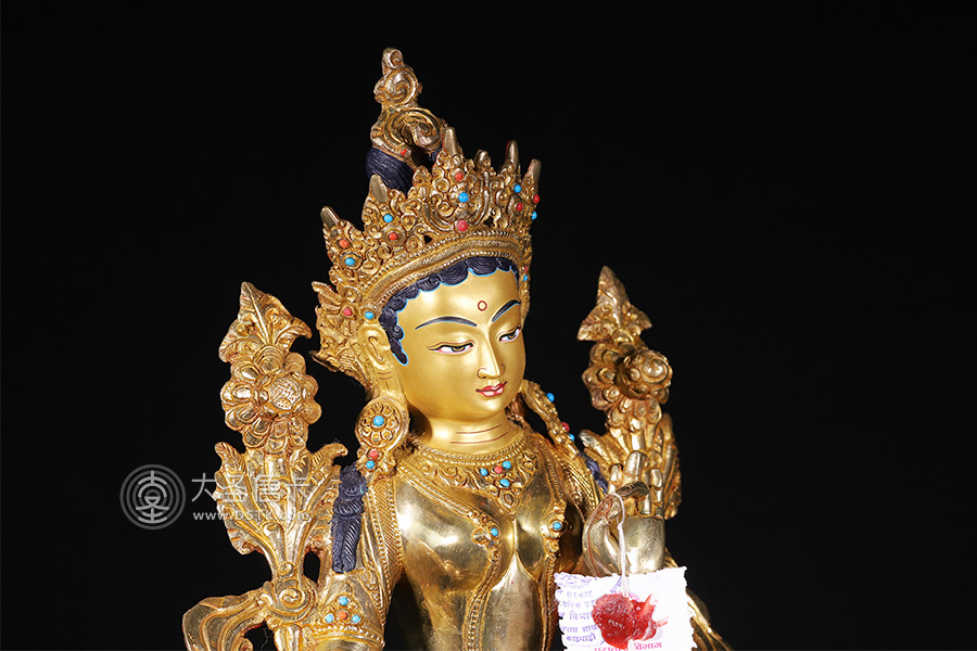 綠度母,藏語叫“卓姜”,是從觀音菩薩的眼淚中化現出來的,所以最慈悲。綠度母為所有度母之主尊,總攝其余二十尊化身之所有功德。因其救度之迅速、摧滅魔業之勇猛,故又稱作“救度速勇母”。