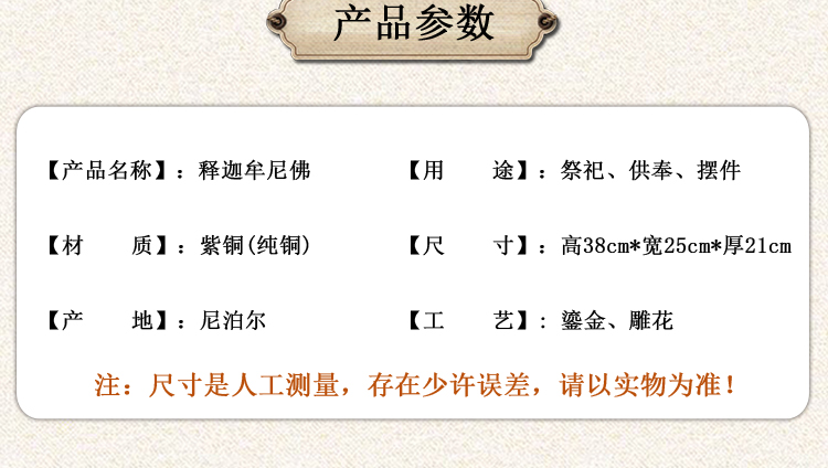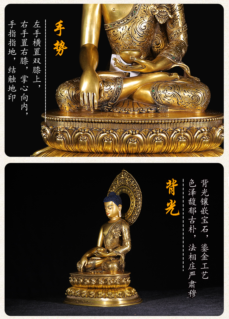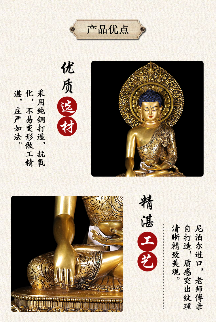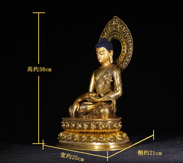 產(chǎn)地:尼泊爾 工藝:鎏金 創(chuàng)作年份:2023 題材:釋迦牟尼 繪制時(shí)間:0日 尺寸:21*25*38cm 重量:0 g 材質(zhì):紫銅 使用場(chǎng)地:
