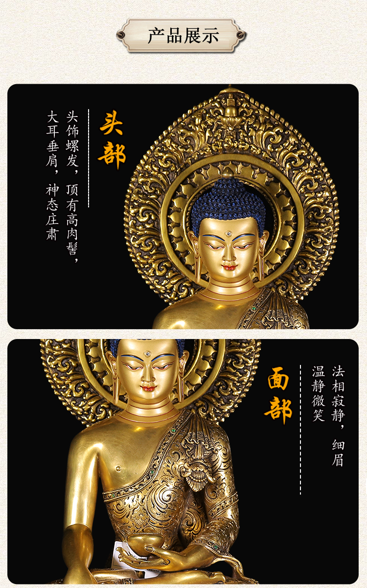 尼泊爾手工釋迦牟尼紫銅鎏金工藝居家擺放38cm