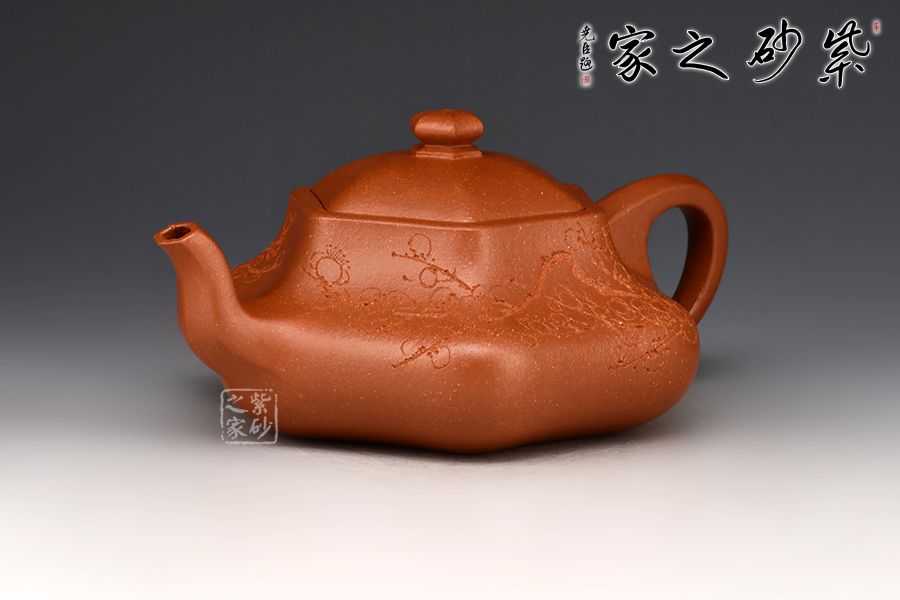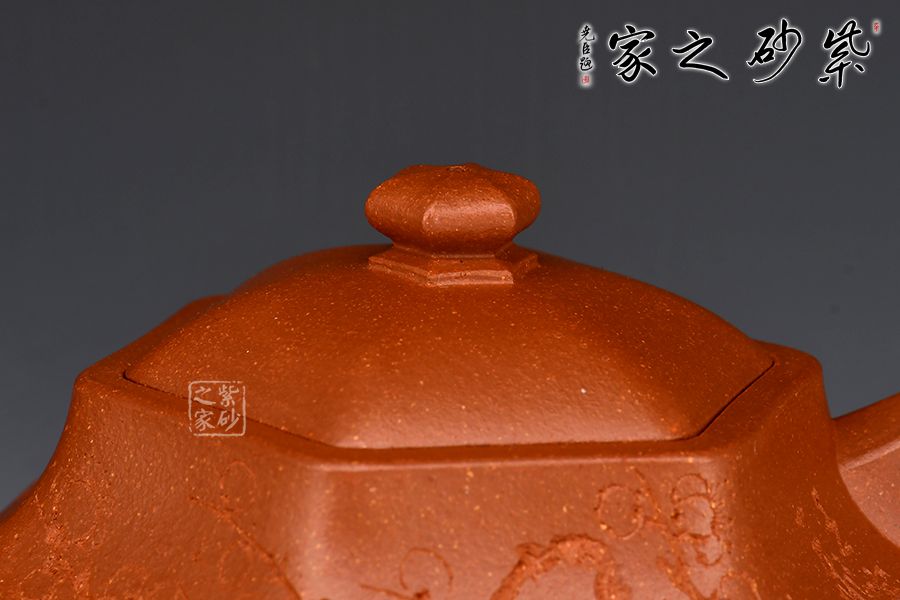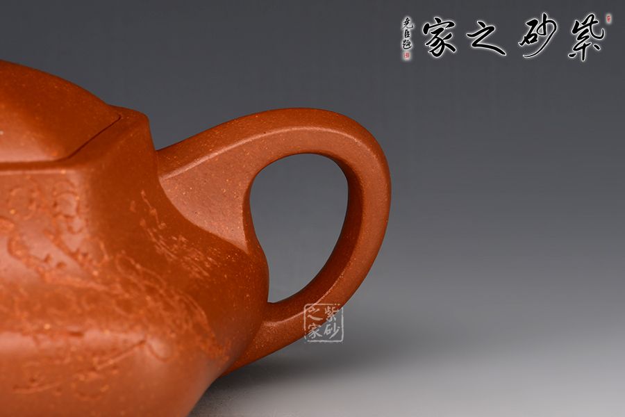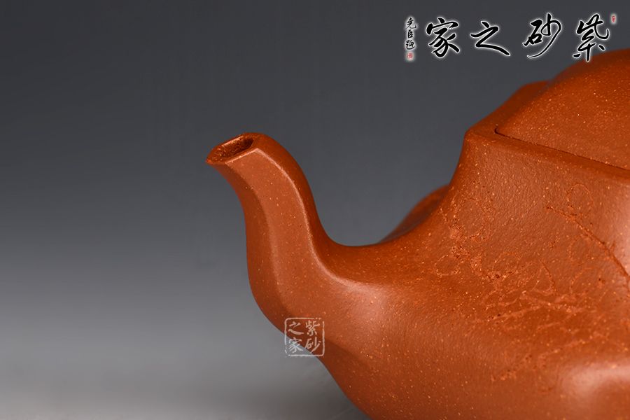 特點:原礦因含緞泥、紅泥、紫泥等諸多共生礦,陶之后,于深沉之“橙紅色”底上,滿佈五彩斑斕的粗細(xì)、深淺之紅、黃星斑點。