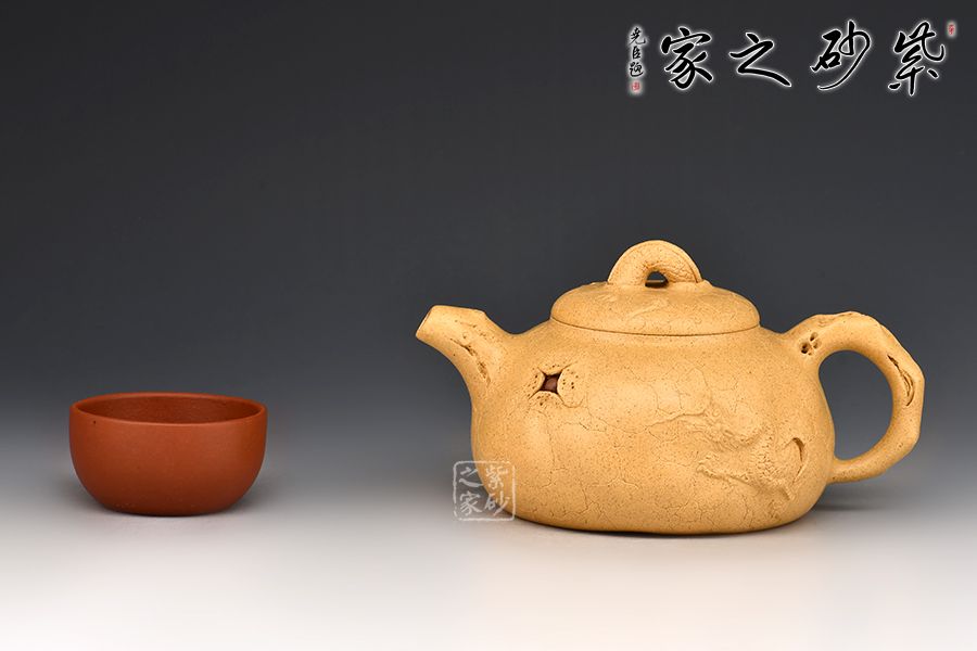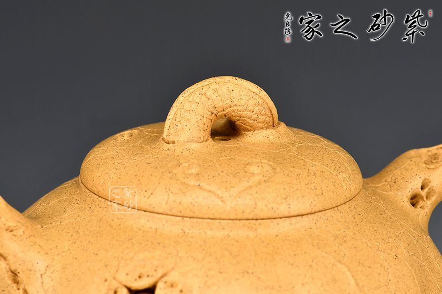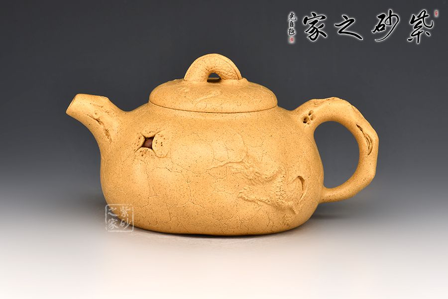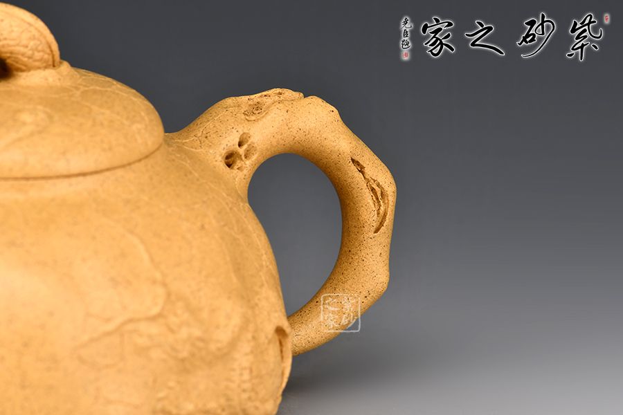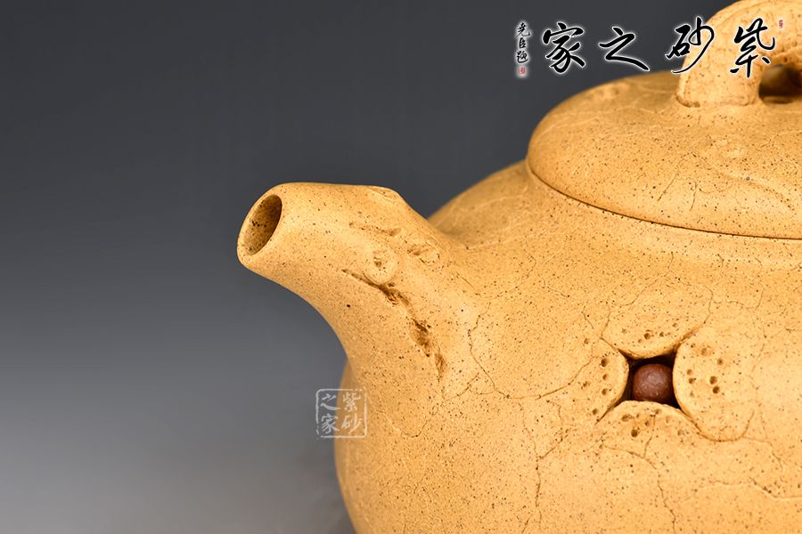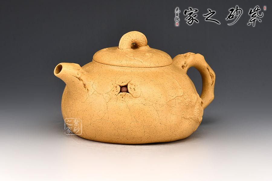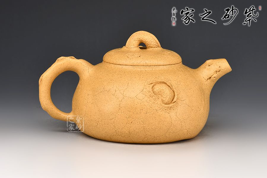 泥性: 感甜嫩綿密,質(zhì)堅(jiān)而溫潤,呈近田黃色調(diào),為江蘇宜興趙莊山系朱泥礦~黃石黃之共生礦,經(jīng)挑揀練製而成,因含鐵量只達(dá)6%左右,致陶之后呈“金田黃色”。窯溫約1175~1180度。收縮比12%。