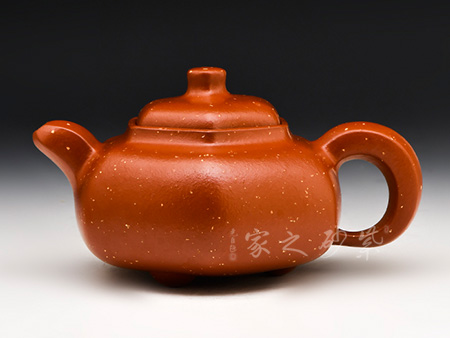 赤龍煥彩,采用家藏大紅袍朱泥底料結(jié)合極其珍貴黃金段料研磨成顆粒,請(qǐng)教原紫砂廠練泥車(chē)間老師傅,進(jìn)行多次配比實(shí)驗(yàn),燒成后黃金段顆粒自然排列有如龍之金鱗,融合的大紅袍朱泥特性,故名赤龍煥彩。