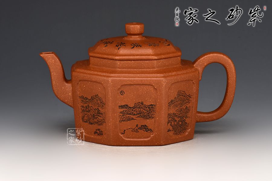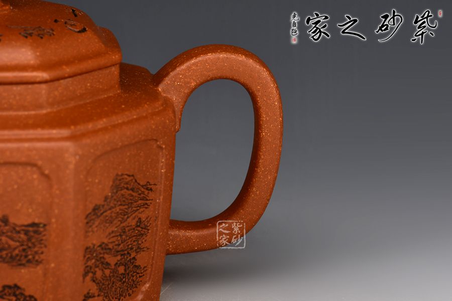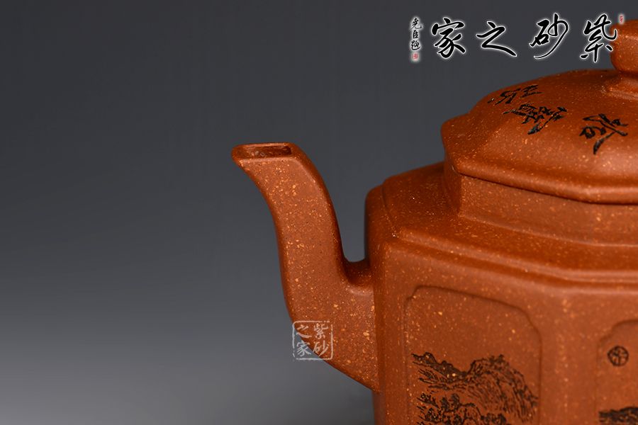 特點:原礦因含緞泥、紅泥、紫泥等諸多共生礦,陶之后,于深沉之“橙紅色”底上,滿佈五彩斑斕的粗細(xì)、深淺之紅、黃星斑點。