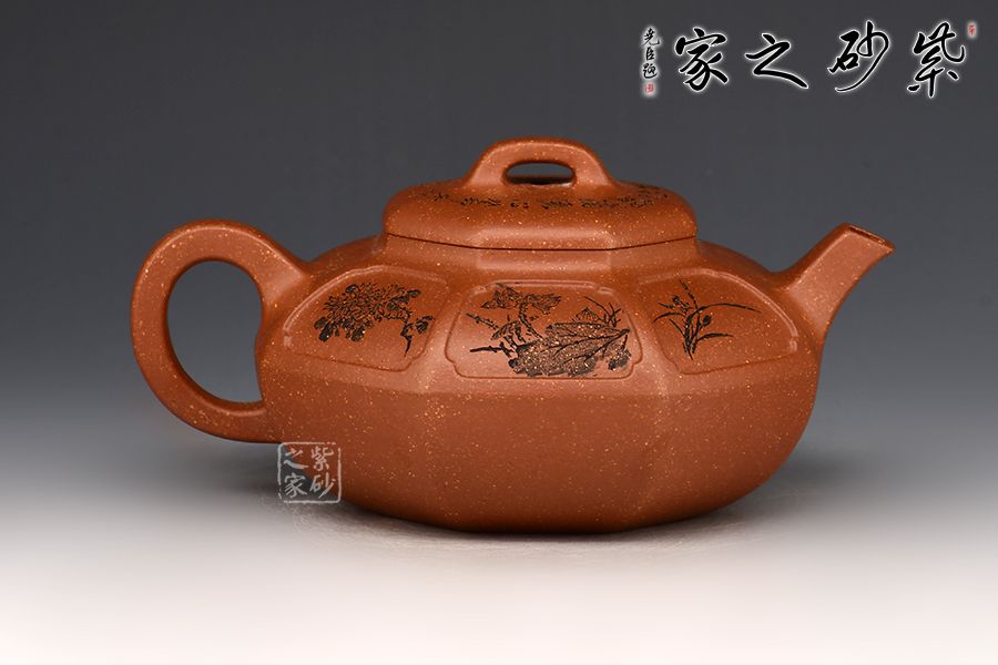 泥性:原礦因含緞泥、紅泥、紫泥等諸多共生礦,陶之后,于深沉之“橙紅色”底上,滿佈五彩斑斕的粗細(xì)、深淺之紅、黃星斑點(diǎn)。