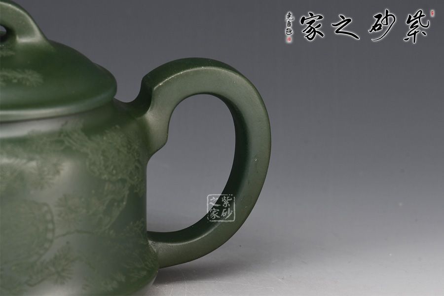 民國(guó)綠泥礦土呈淡綠色層片狀,產(chǎn)于黃龍山紫砂泥巖層中(象五花肉一樣),僅數(shù)厘米厚,由于位于紫泥上層與巖板間,俗稱"龍筋",其礦物組成主要為二氧化硅,石英及少量的金屬氧化物,采掘量極少,如今已經(jīng)非常稀有。